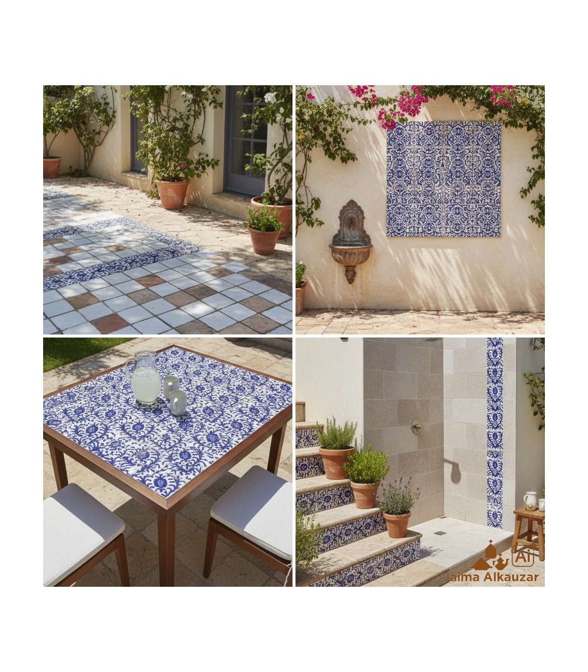 Inspiriert von der reichen andalusischen Kunsttradition, erinnern diese Fliesen an die Eleganz von Gittern und geometrischen Mustern der arabischen Kunst. Vollständig handgefertigt, ist jedes Stück einzigartig und spiegelt das alte Wissen der marokkanischen Handwerkskunst wider.