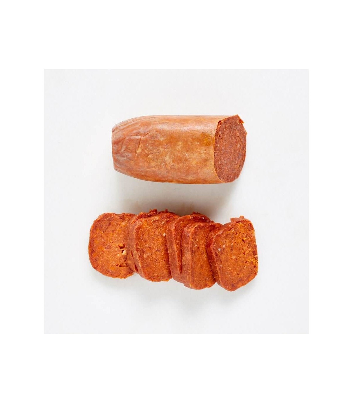 Sobrasada, schmackhaft, 100% Halal Kalbfleisch nach mallorquinischer Art. Hergestellt mit traditionellen Techniken. Produkt aus den edlen Teilen von frischem Kalbfleisch, das unter kontrollierten Bedingungen einem Trocknungsprozess unterzogen wird.