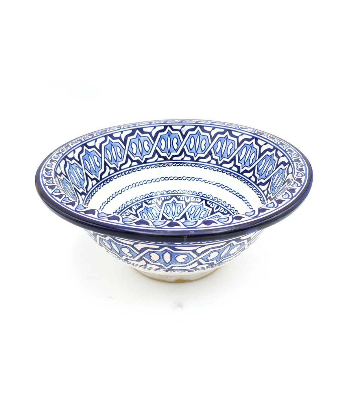 Arabisches kobaltblaues und weißes Keramikwaschbecken in 2 Größen erhältlich. Keramikwaschbecken, handgefertigt in Marokko von Handwerksmeistern. Ideal für die Nachbildung arabischer, marokkanischer, andalusischer und maurischer Dekorationen.