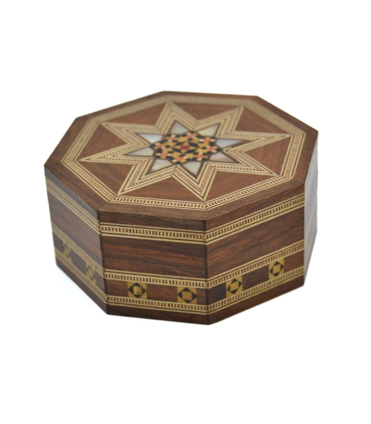 Syrische achteckige Box mit lasergeschnittenem Gitter verziert.