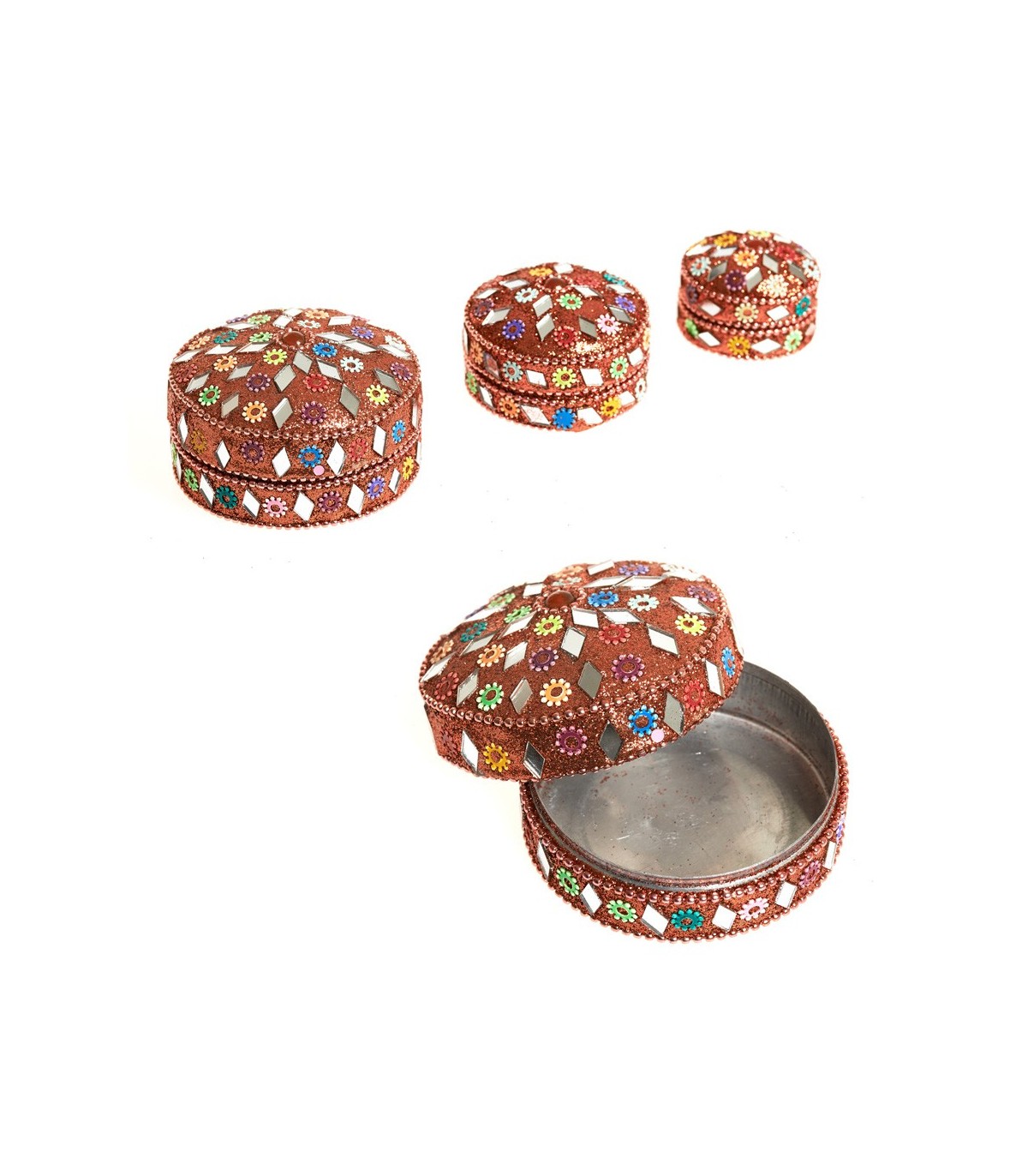 Spiel 3-Boxen mit hell eingerichtet und intern auf Glitter ausgekleidet.Die Boxen sind in einem anderen Stil russische Puppen gespeichert.Ideal für Geschenk.Erhältlich in verschiedenen Farben.Medida:Pequeno: 5 CmMediana: 6 CmGrande: 7 cm