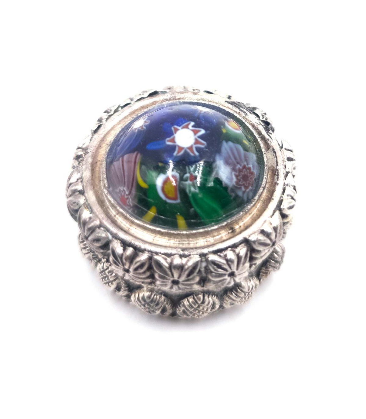 Alpaka Mini dekorative mehrfarbige Glaspillendose indisches Kunsthandwerk