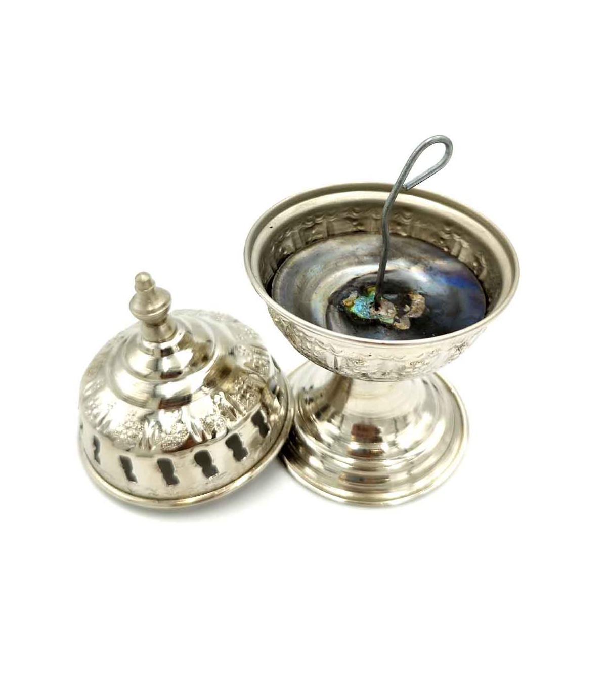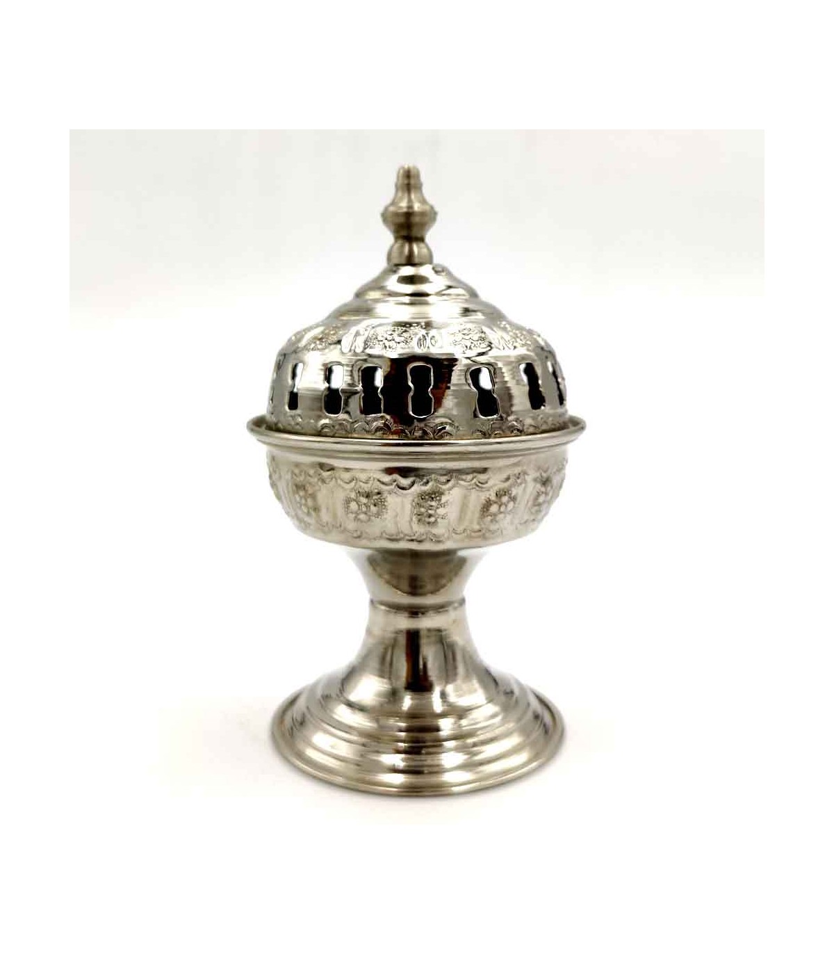 Räuchergefäß aus Alpaka handgefertigt in Marokko. Zum Verbrennen von Harz-Weihrauch, Räucherkegeln, aromatischen Kräutern. Sehr dekorativ verleiht Ihrem Zuhause einen andalusischen Touch.