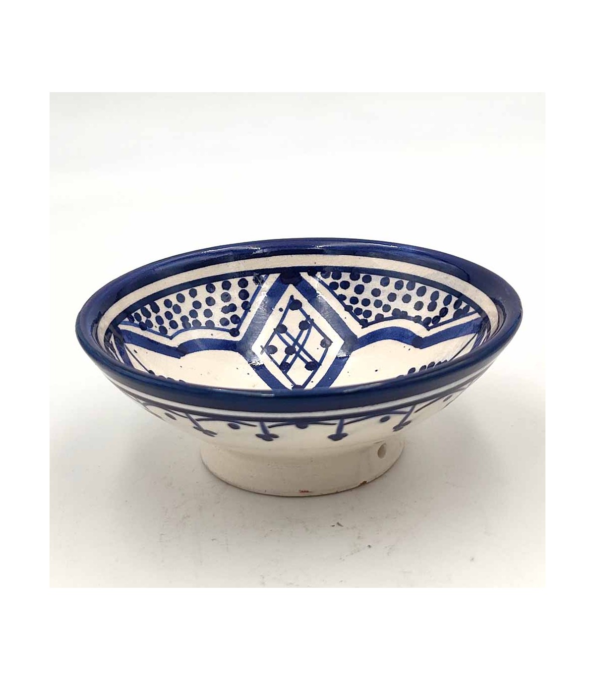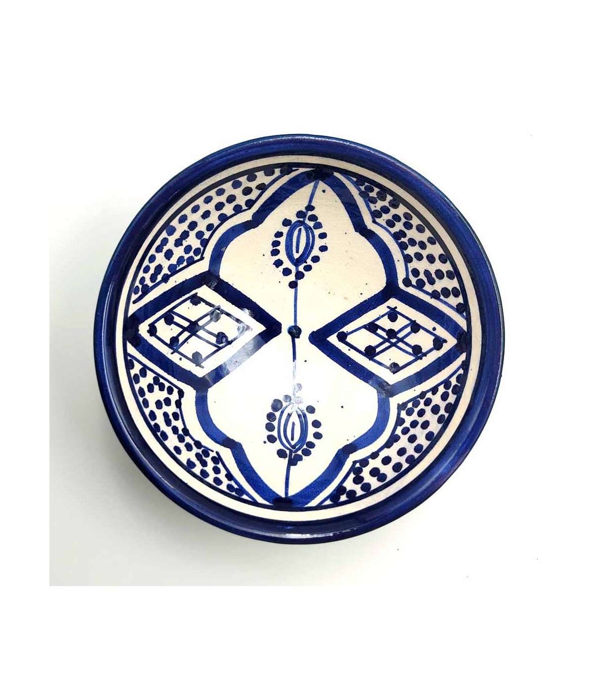 Keramikschale aus der berühmten Stadt Asfi oder Safi in Marokko. Dort wird Keramik im andalusischen Stil hergestellt, der von Meister zu Meister weitergegeben wird, wobei die Technik und die Farben des alten Al-Andalus beibehalten werden.