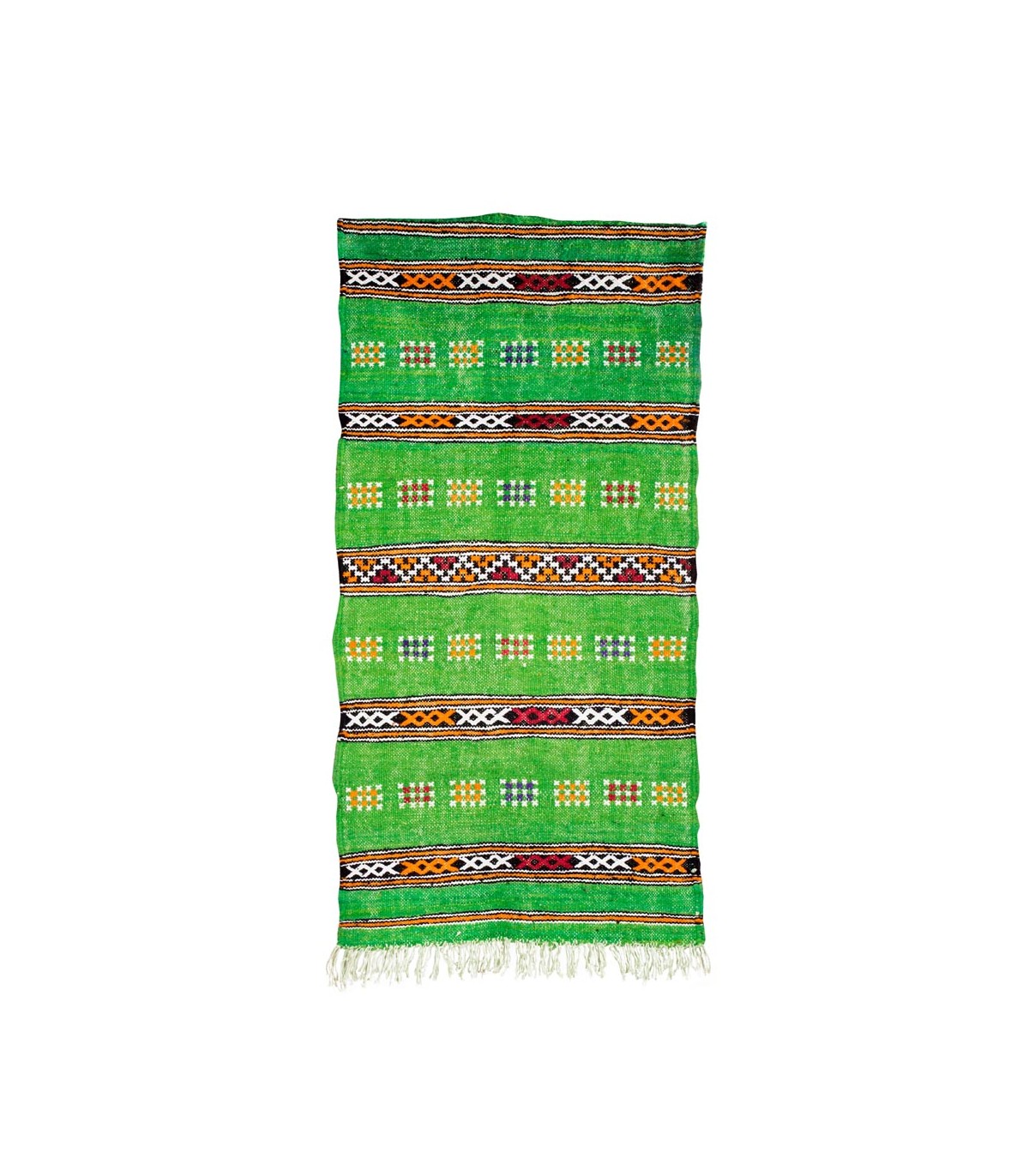 Berber ethnischer Wandteppich stark>handgefertigt von authentischen marokkanischen Handwerkern/ p> Dekoriert mit geometrischen Motiven und leuchtenden Farben/ p> Die Kelims sind leicht, so dass sie an die Wand gehängt werden können, auch als Matte für den Fuß des Bettes verwendet werden können oder um Möbel oder Räume zu dekorieren und einen böhmischen Touch voller Farbe und orientalischem Charme zu verleihenbr /> Maße: 120 x 58 cm