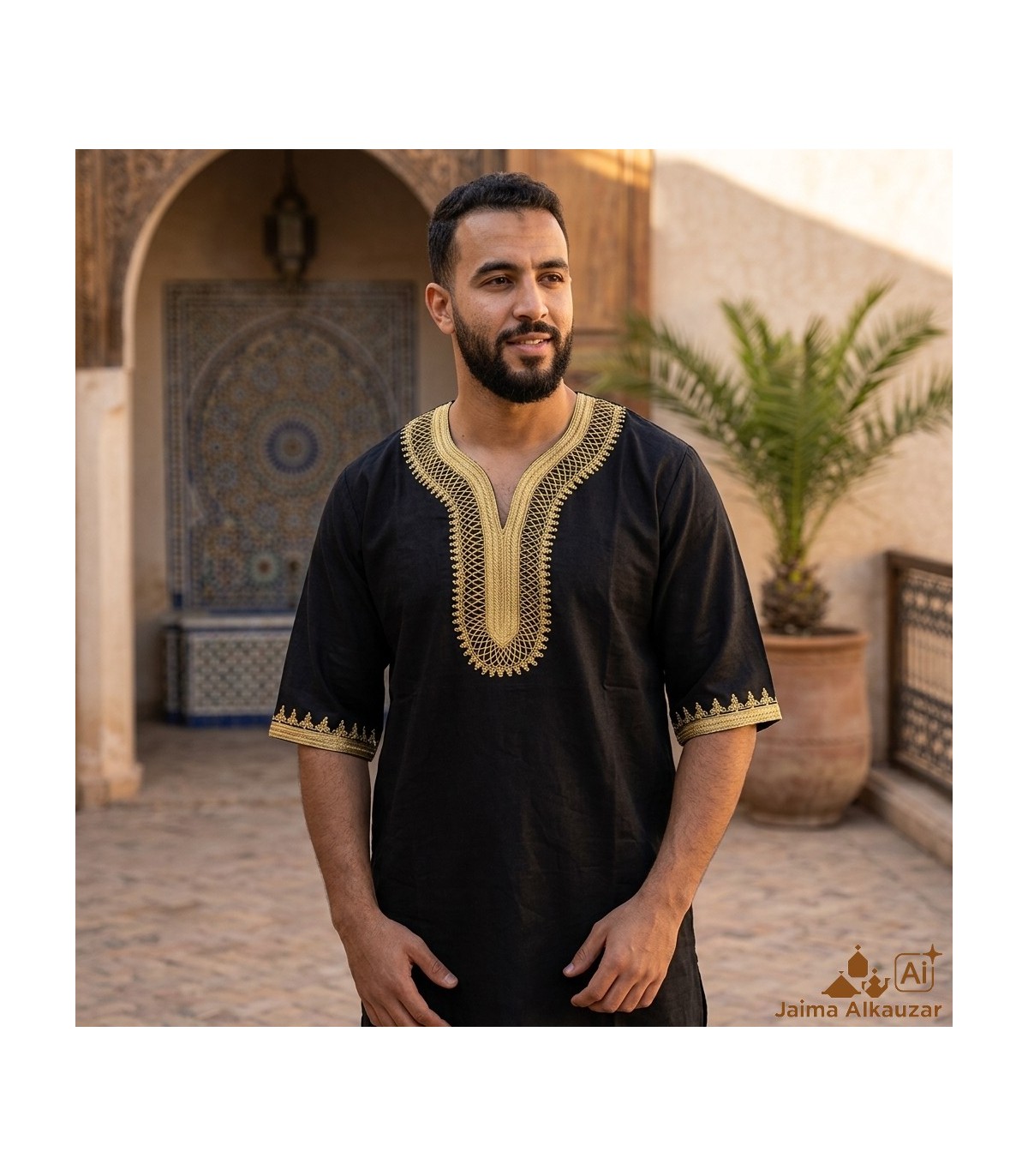 Dieses schöne marokkanische Hemd, bestickt im andalusisch-arabischen Stil, vereint Eleganz und Komfort. Seine Farbe mit goldenen Stickereien macht es zu einem einzigartigen Kleidungsstück. In verschiedenen Größen erhältlich, ist es perfekt für den Sommer aufgrund seines angenehmen Stoffes und lockeren Designs, das die Atmungsaktivität fördert.