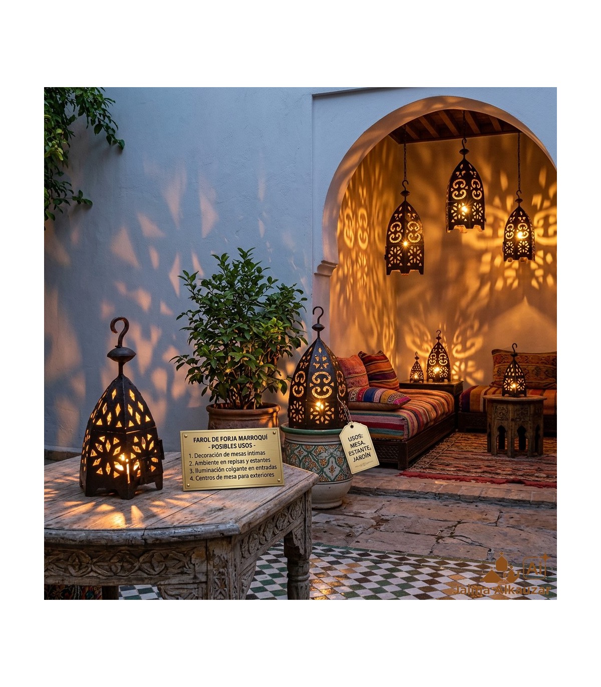 Sechseckige Laterne in Schmieden zum Segeln gemacht. In 3 Größen erhältlich. Einer Monade. Sehr einfache und dekorative Element für jede Umgebung, vor allem Arabisch.