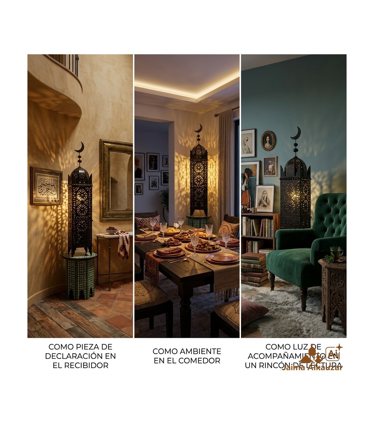 Eisenlampe zur Dekoration im andalusischen Stil für Ihre Terrasse, Garten, Veranda oder um das Innere Ihres Hauses im reinen arabischen Stil zu dekorieren. Handgefertigte Lampe in Marokko, verziert mit arabischer Laubsägearbeit. Es kann sowohl im Außen- als auch im Innenbereich verwendet werden. Ideal für Kerzen oder Elektroinstallation (abseits) Dank seines Designs und der durchbrochenen Zeichnungen schafft es eine sehr angenehme Atmosphäre. Da es sich um handgefertigte Produkte handelt, kann das Design Unvollkommenheiten oder einen etwas anderen Ton als das Foto aufweisen. Größe: 140 cm x 25 cmWenn Sie eine elektrische Installation benötigen, fügen Sie diesen Artikel für jede benötigte Lampe hinzu. Schuljunge="https://jaimaalkauzar.es/en/arabic-lamps/3944-8439-electrical-installation-fo