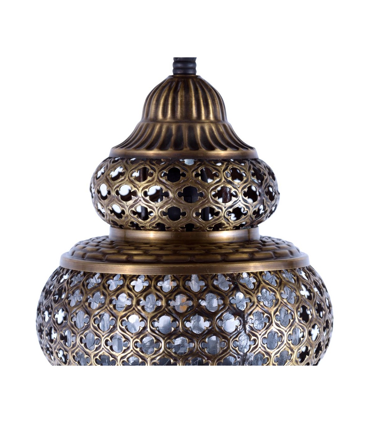 Türkische Decken- oder Pendelleuchte aus Metall und Glas in Crackle-Metal-Technik. Es kann mit einem Adapter an der Decke oder an der Wand aufgehängt werden. In jaimaAlkauzar können Sie die Unterstützung erwerbenref = "https://jaimaalkauzar.es/es/arab-lamps/5720-support-o-gancho-de-pared-para-colgar-lamparas-modelo-caracol-22cm-.html">Hier a>Dank der geschnitzten Mosaike strahlt es ein einzigartiges Licht aus, das überall dort, wo es platziert ist, eine magische und entspannende Atmosphäre schafft.