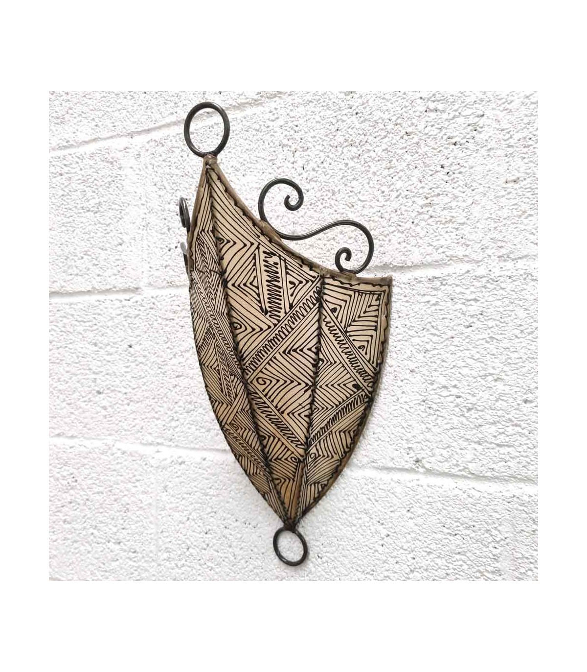 Handgefertigte Wandleuchte in Marokko mit Leder und handbemalt mit Henna. Diese Wandleuchte wird in jeder Ecke Ihres Hauses eine maurische Atmosphäre schaffen und ihm einen andalusischen Touch verleihen.