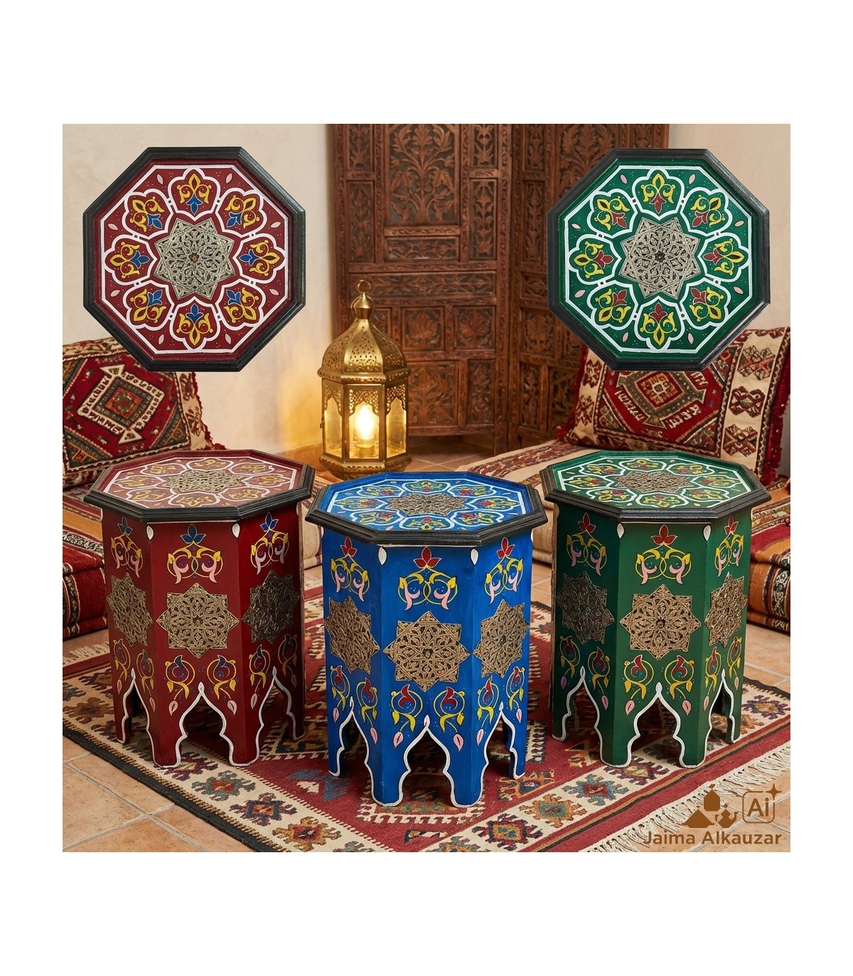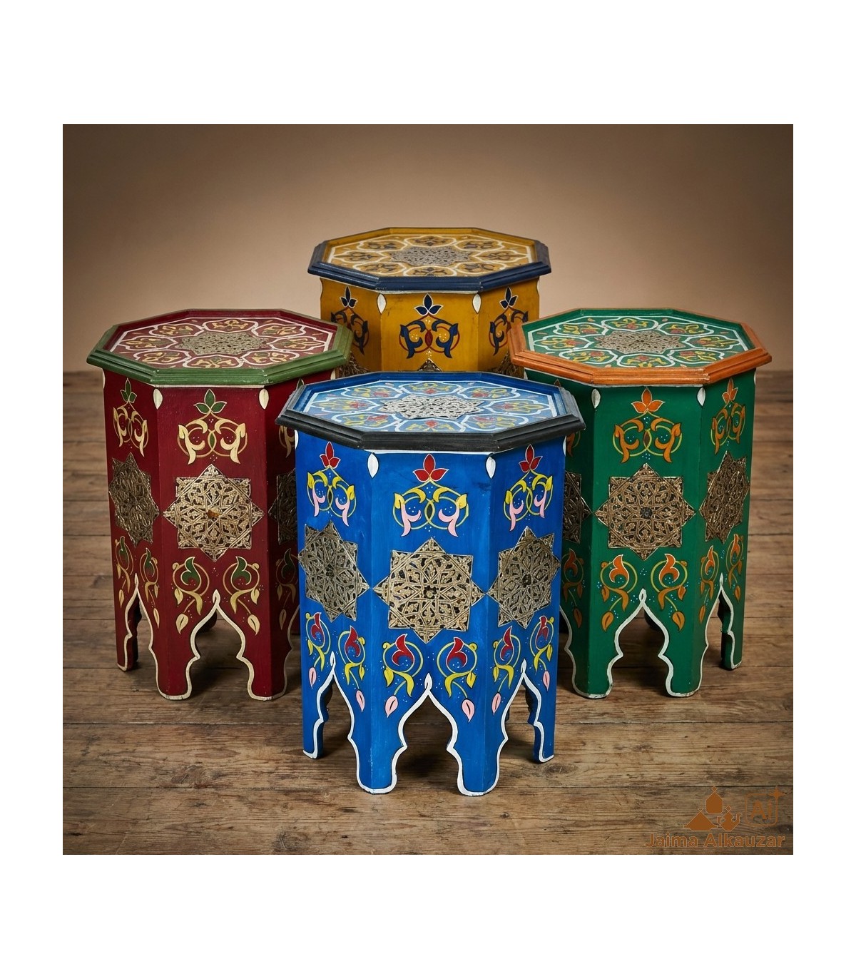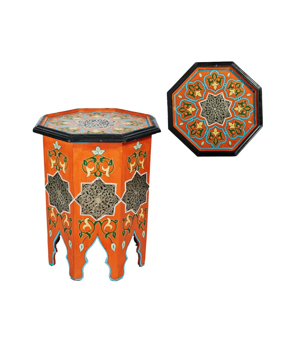 Marokkanischer Beistelltisch aus Holz, Knochen und geprägtem Neusilber, handgefertigt in Marokko. Tolles Kunsthandwerk, ideal zum Dekorieren jeder Art von Haus. Arabische, maurische, andalusische, böhmische,...