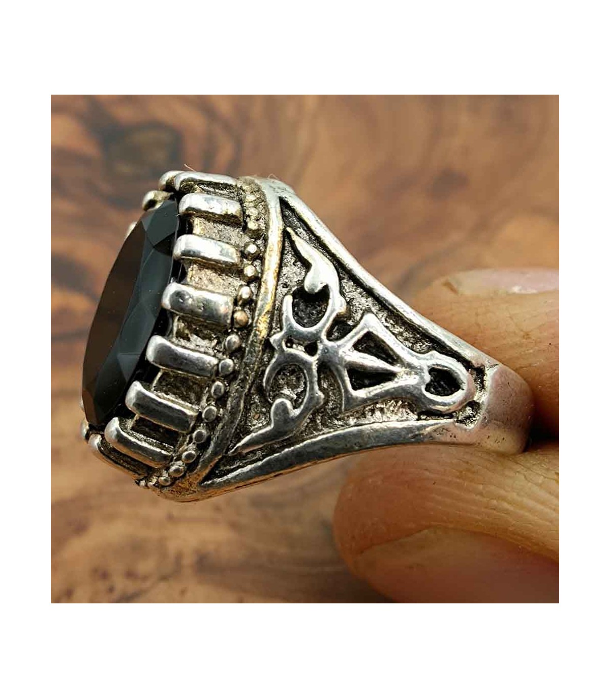 Unisex-Ring aus Edelstahllegierung - Schwarzer Stein - Mittelalterlicher gotischer Stil - Zalazin Aswad-Modell