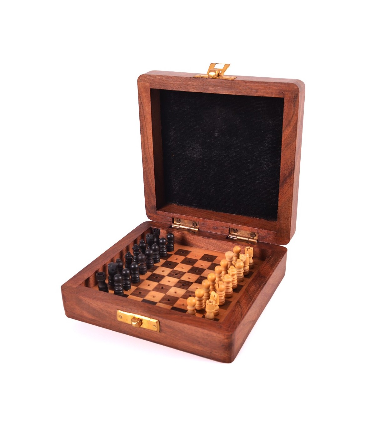 Tragbares Holzschach von Hand. p>