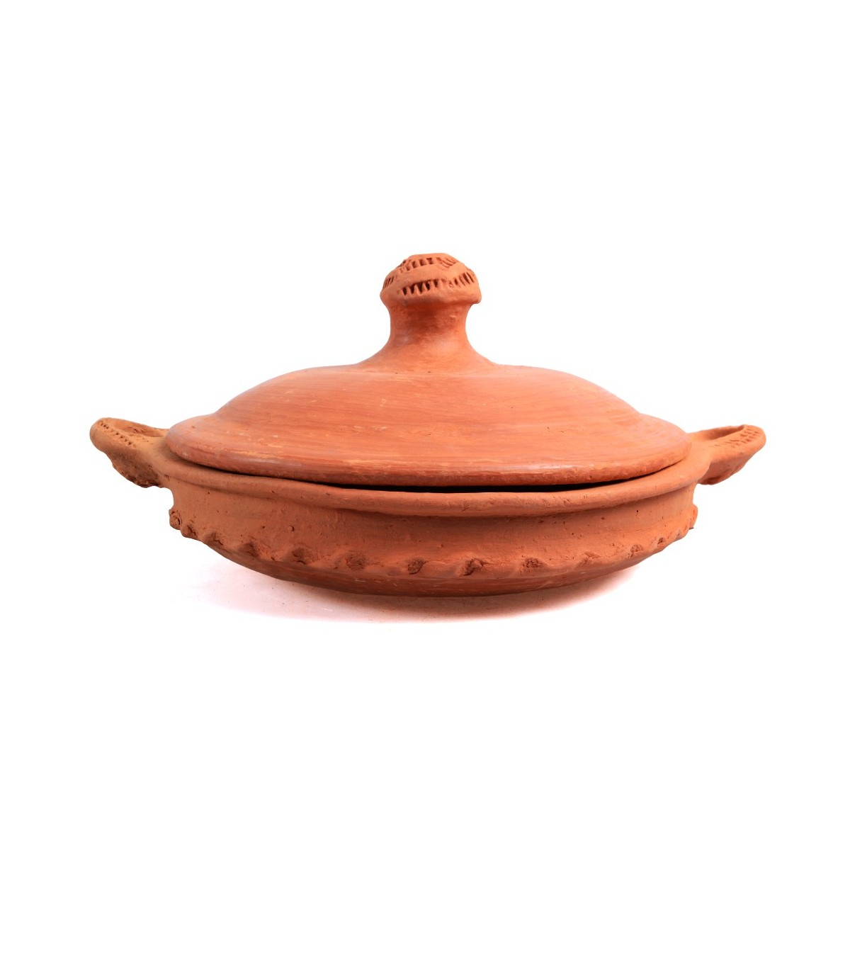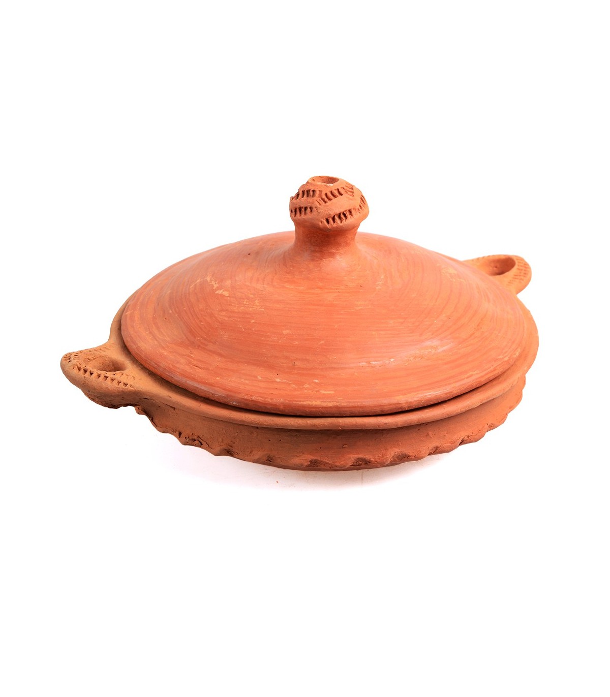 Ovaler Ton-Tajin aus Marokko, handgefertigt von traditionellen Handwerksmeistern. Ideal für den direkten Einsatz auf einem Holz- oder Gasfeuer. Aufgrund der unregelmäßigen Form nicht für andere Küchentypen...