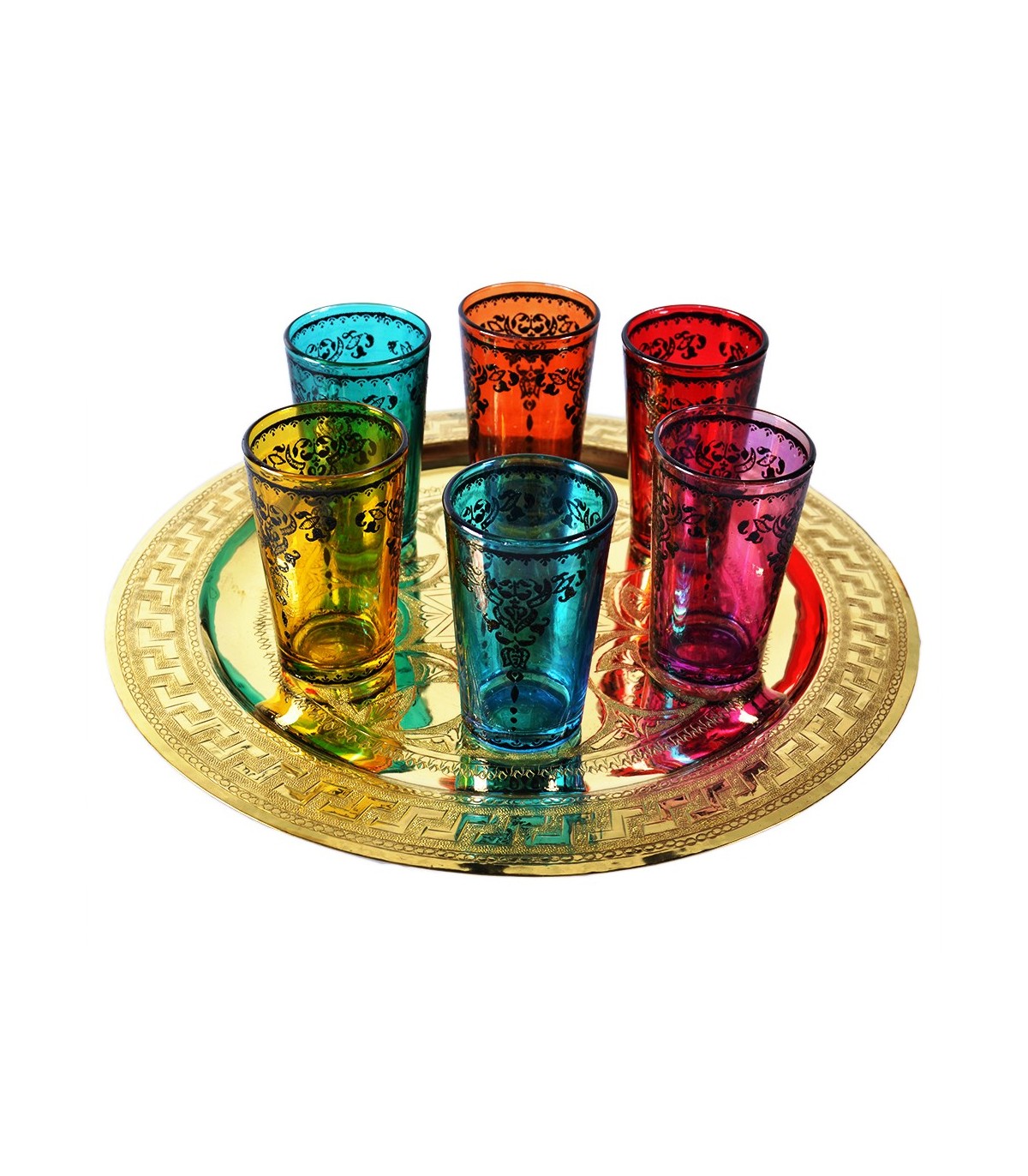 Set oder Set mit 6 Teegläsern im marokkanischen Stil, ideal zum Trinken von grünem Tee mit Minze oder jeder Art von Tee oder Aufgüssen. Sehr schön dekoriert mit Goldrand und Farben. Set aus Teegläsern, ideal als...