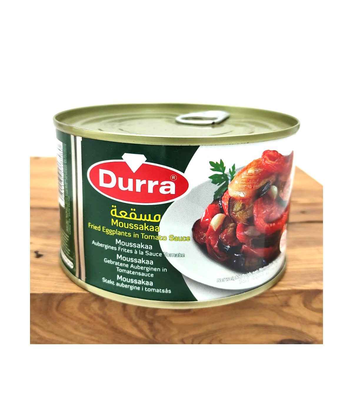 Moussaka in der Dose, ein traditionelles Rezept aus dem Osten mit Tomaten, Auberginen, Zwiebeln, Knoblauch und scharfer Chilisauce. Perfekt, um schnell und bequem ein authentisches und schmackhaftes Gericht zu genießen.