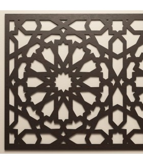Mit maurischen Gittern verzierter Holzschirm, inspiriert von den Nasridenfliesen der Alhambra in Granada, kann als Sichtschutz, Raumteiler, Kopfteil oder zur Dekoration von Räumen verwendet werden. Es wird eine...