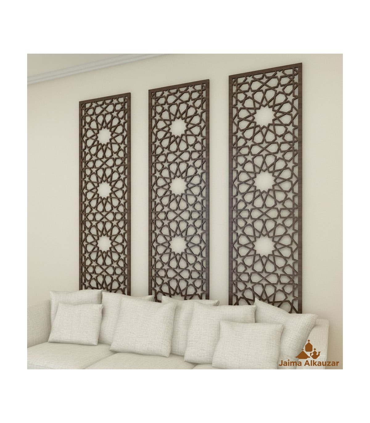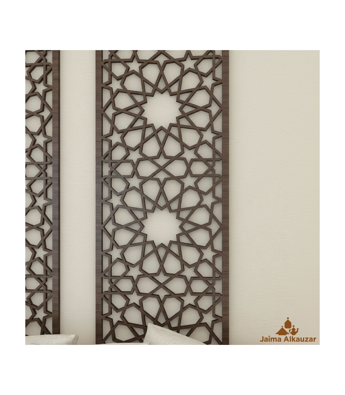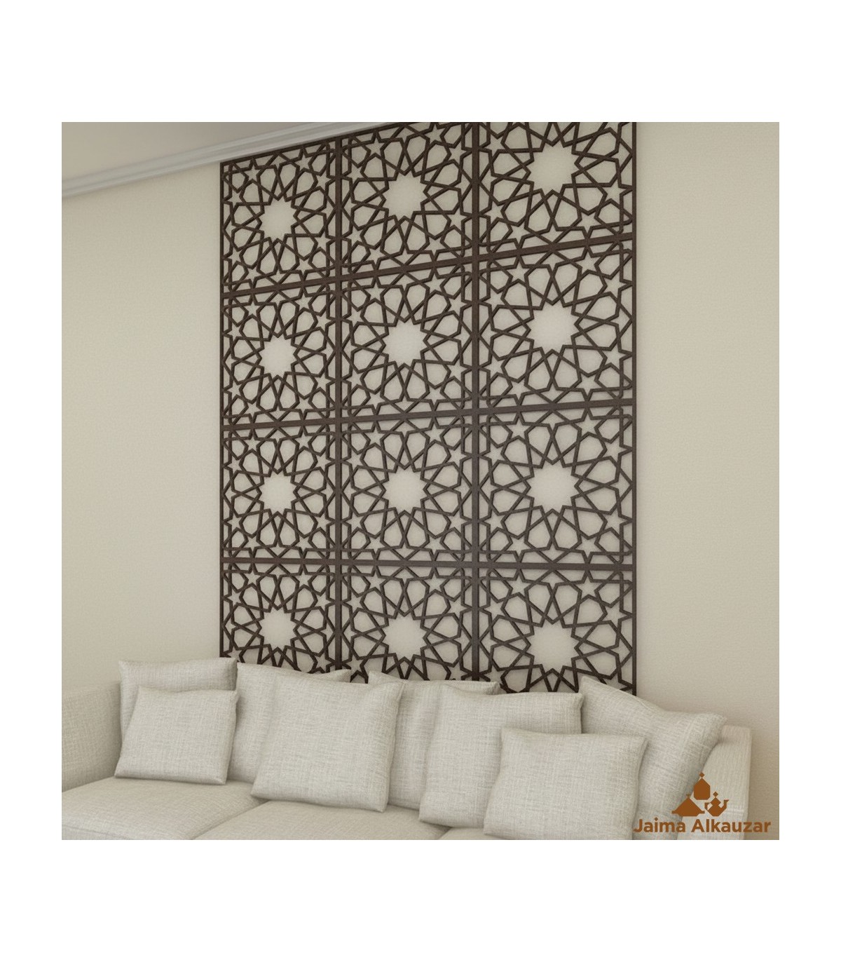 Biombo oder Raumteiler im arabischen Gitterdesign Mekness.Hergestellt aus 1 cm Okumenholz.Die Endfarbe kann weiß, Mahagoni, Walnuss usw. sein.