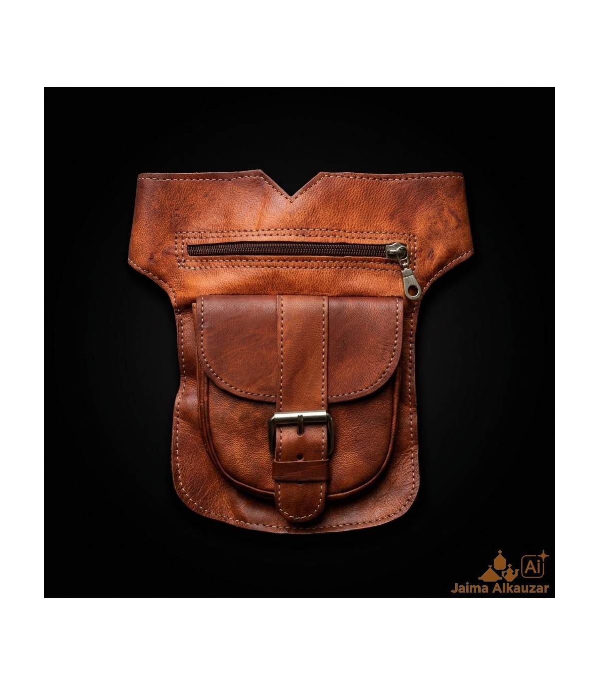 Artisan Gürteltasche aus 100% Leder. Es hat 1 Tasche auf der Vorderseite mit einem Schnallenverschluss und 2 mit einem Reißverschluss, eine vorne und die andere hinten/ stark>