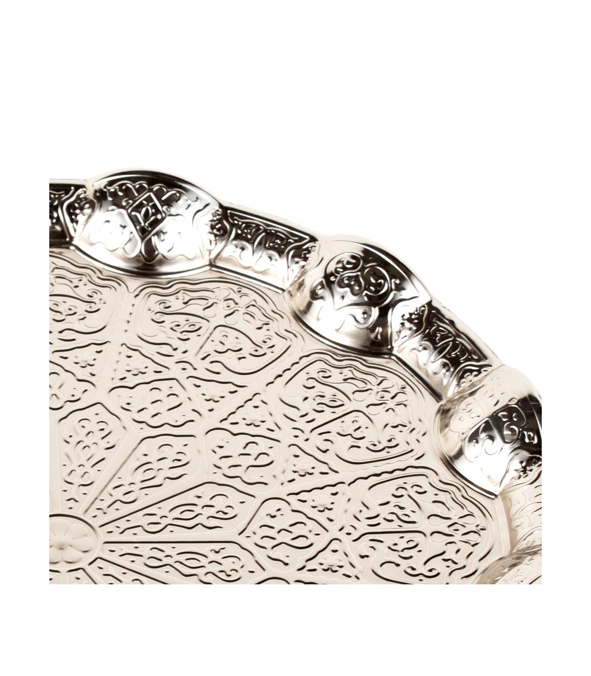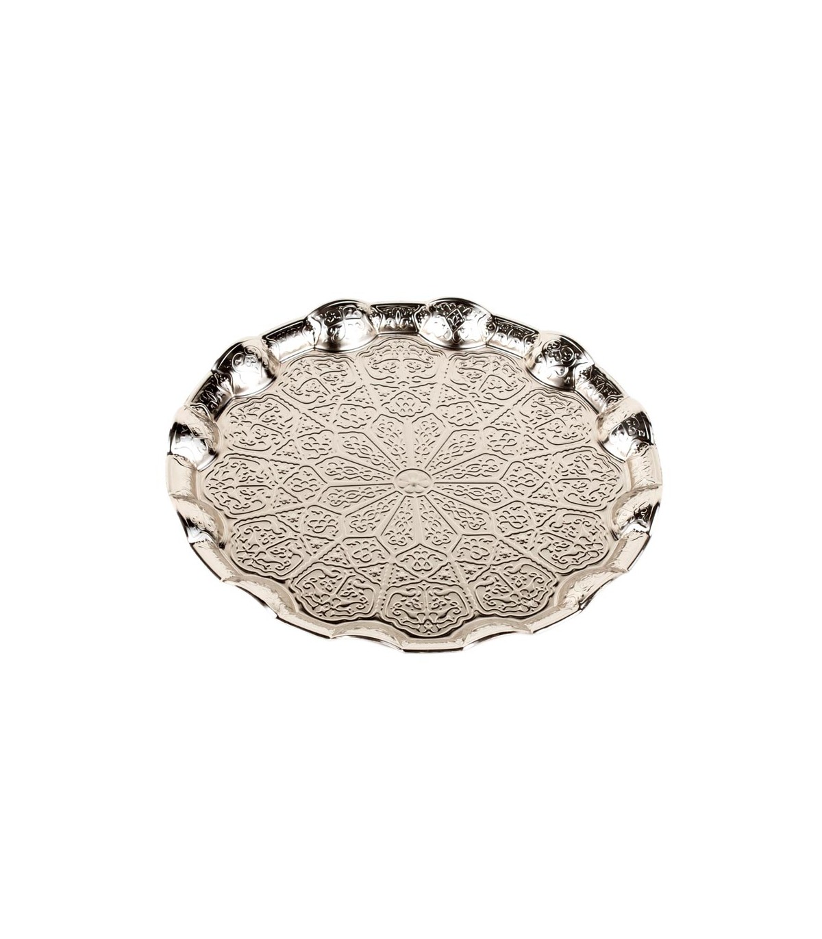 Arabisches Teetablett aus Metall mit arabischen Kalligraphie-Gravuren, seine Form ist sehr elegant und hat einen spektakulären Glanz.