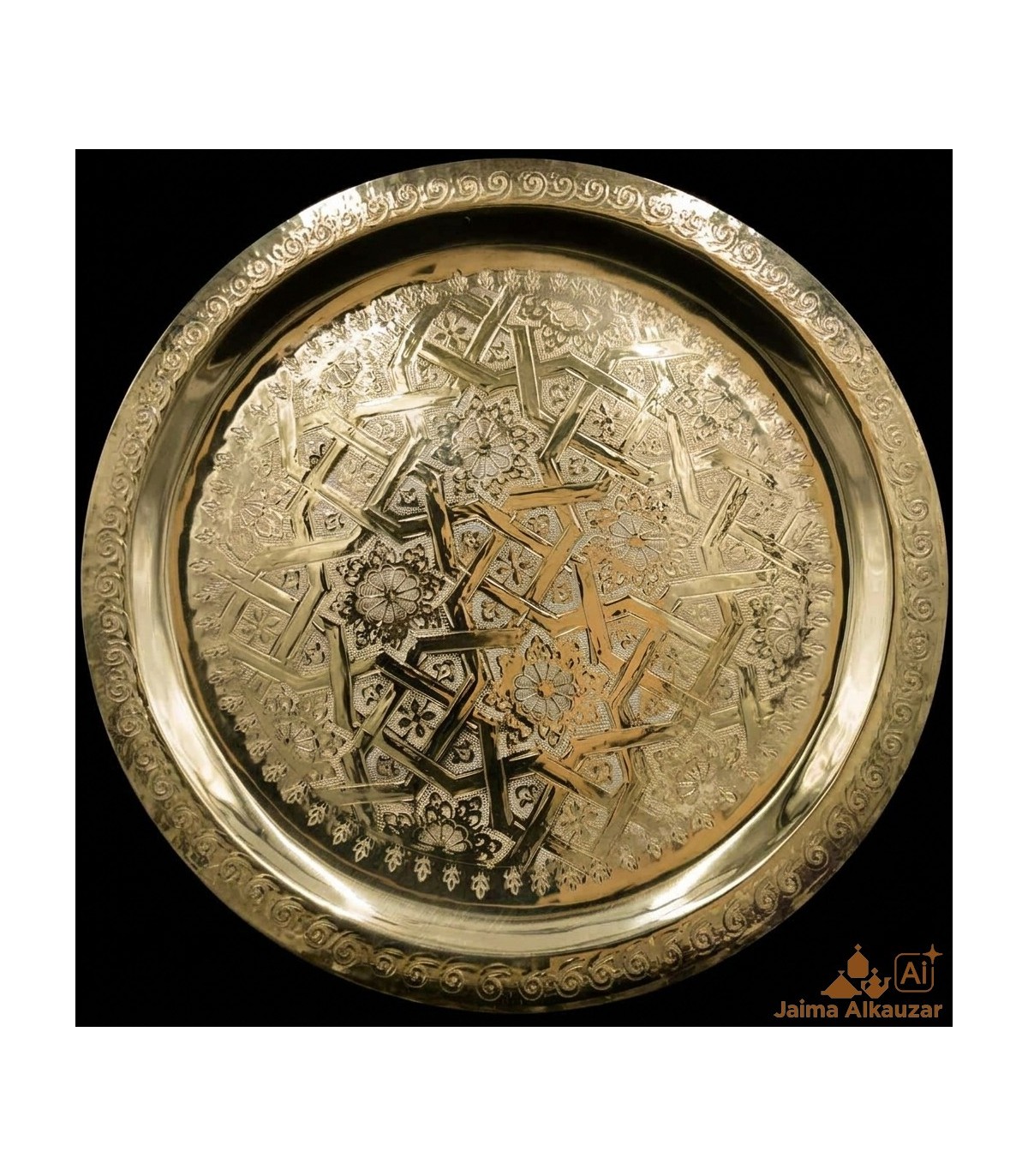 Handgeschnitztes marokkanisches Tablett aus goldenem Alpaka: Charme und Authentizität des marokkanischen Modells Sinia Dhabi