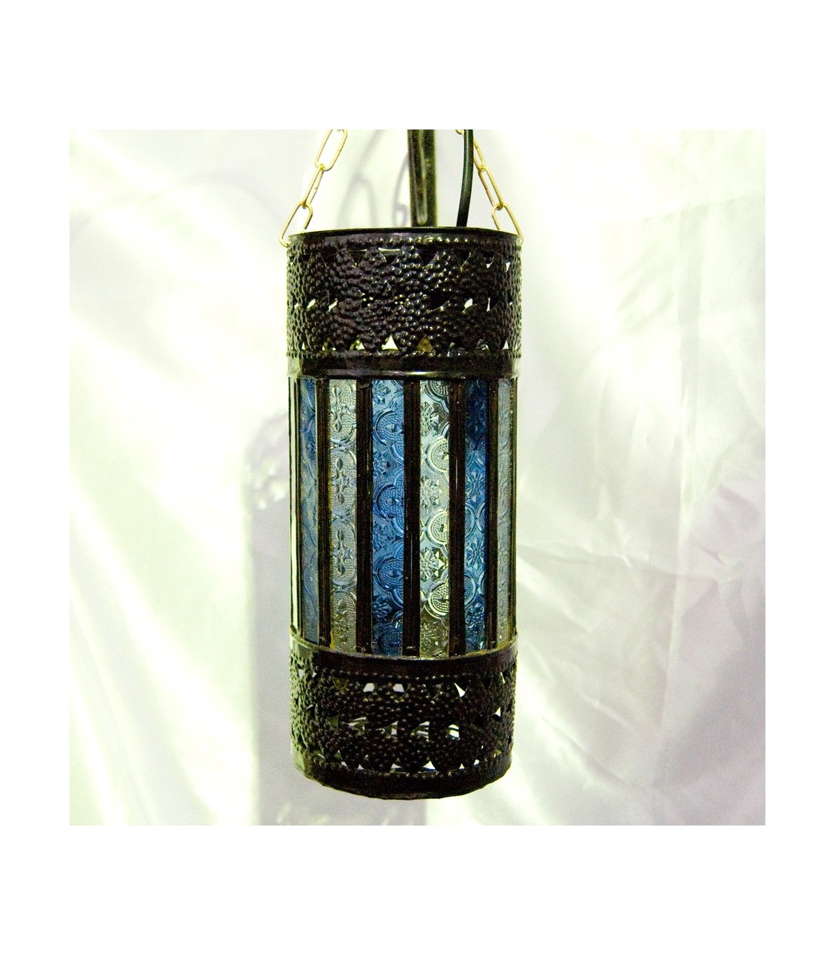 Openwork wrought iron lamp decorated with Arabic motifs. High quality product very well finished. Ideal for Arab halls or large rooms.Create a very warm and welcoming atmosphere thanks to the openwork and colored...