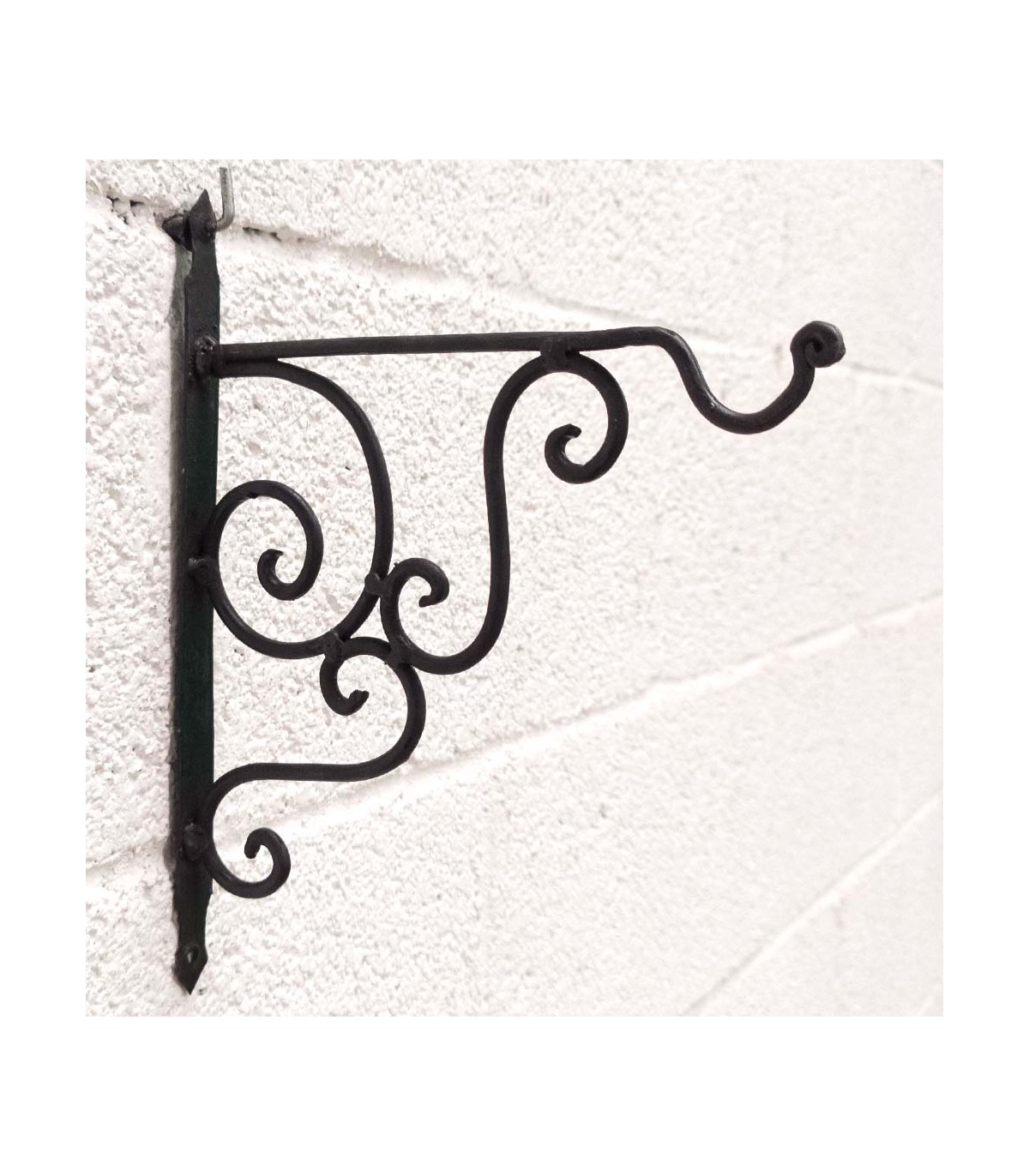 Handcrafted wrought iron hanger for lamps and lanterns.