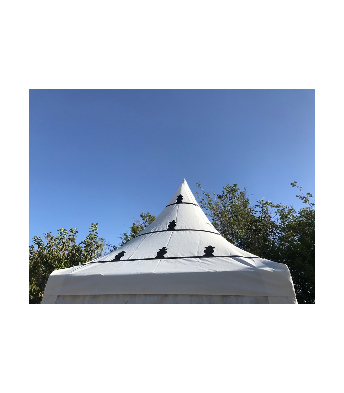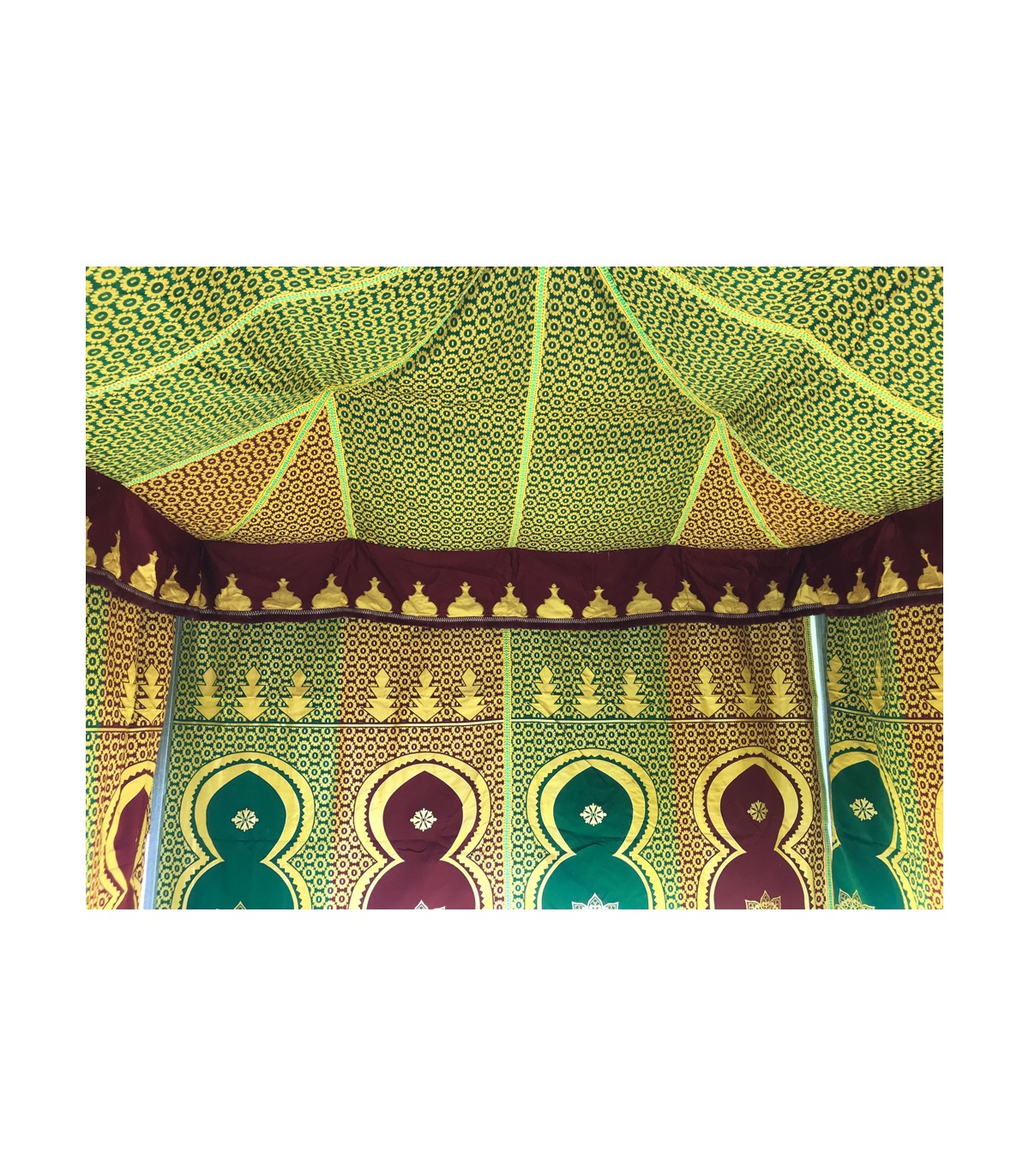 Measurements: 3 x 3 meters. Height 4 meters (from the ground to the top of the Moroccan Jaima)