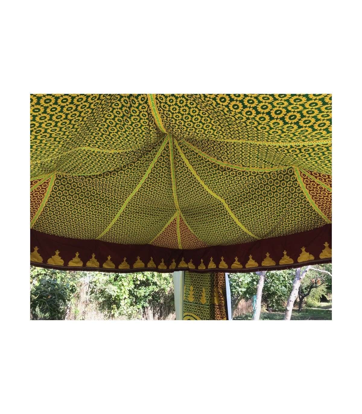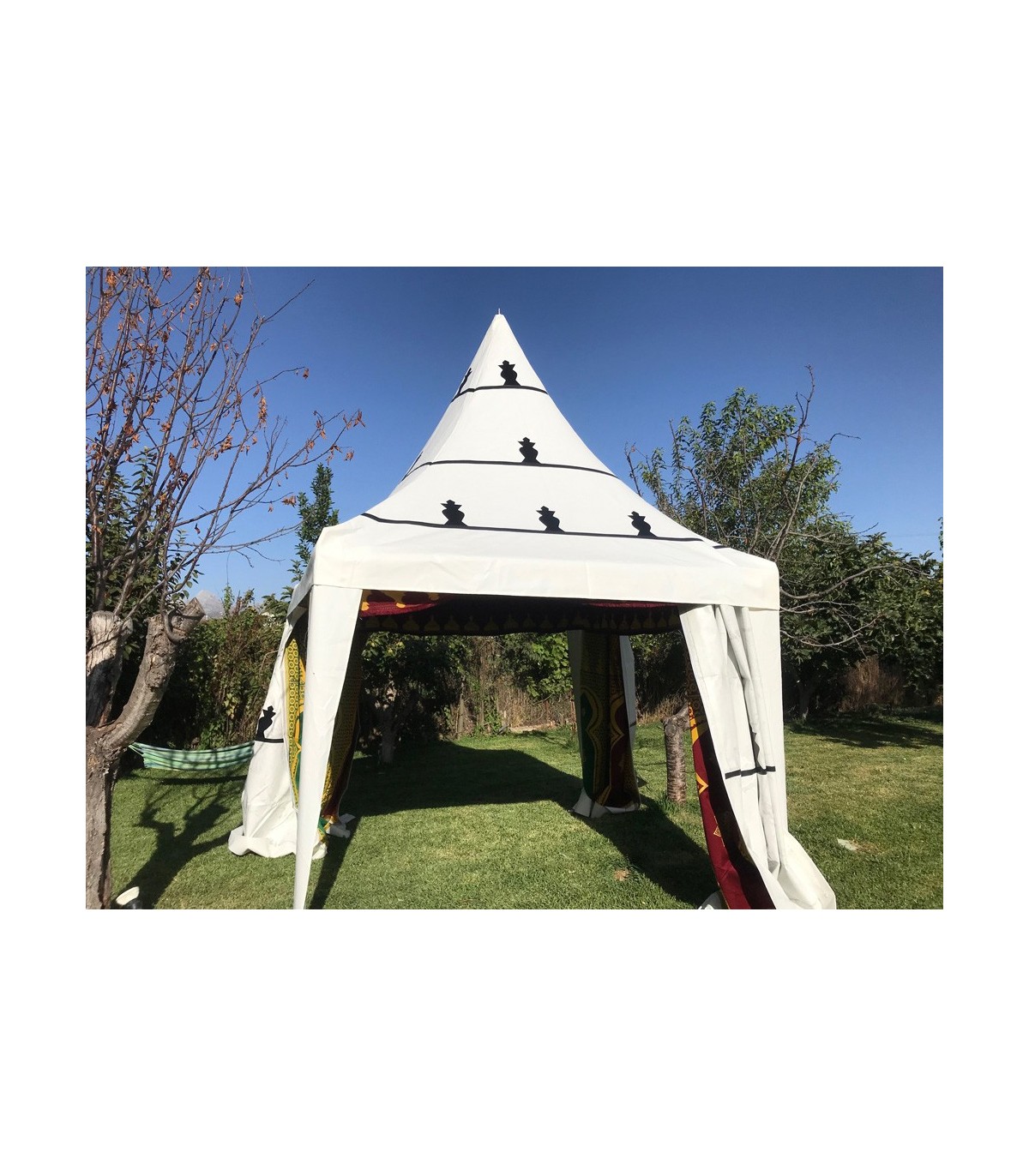 Measurements: 2 x 2 meters. High 4 meters (from the ground to the top of the Moroccan Jaima)