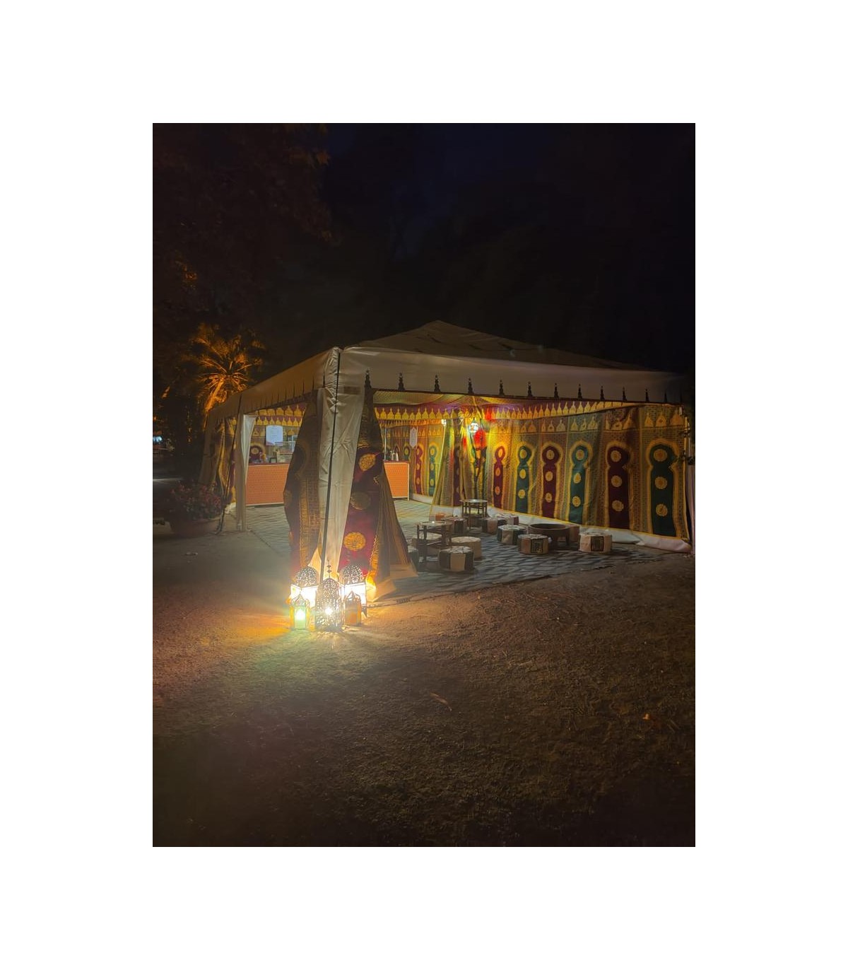 Measures: 5 x 5 meters. Height 3.5 meters (from the ground to the top of the Moroccan tent)