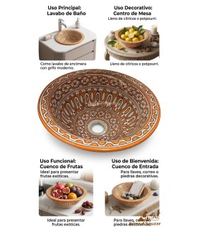 Multicolor Ceramic Arab Sink 35 cm, Ceramic sink handmade in Morocco by artisan masters. Ideal for recreating Arab, Moroccan, Andalusian, Moorish decorations.This design is what will be sent when placing your order.