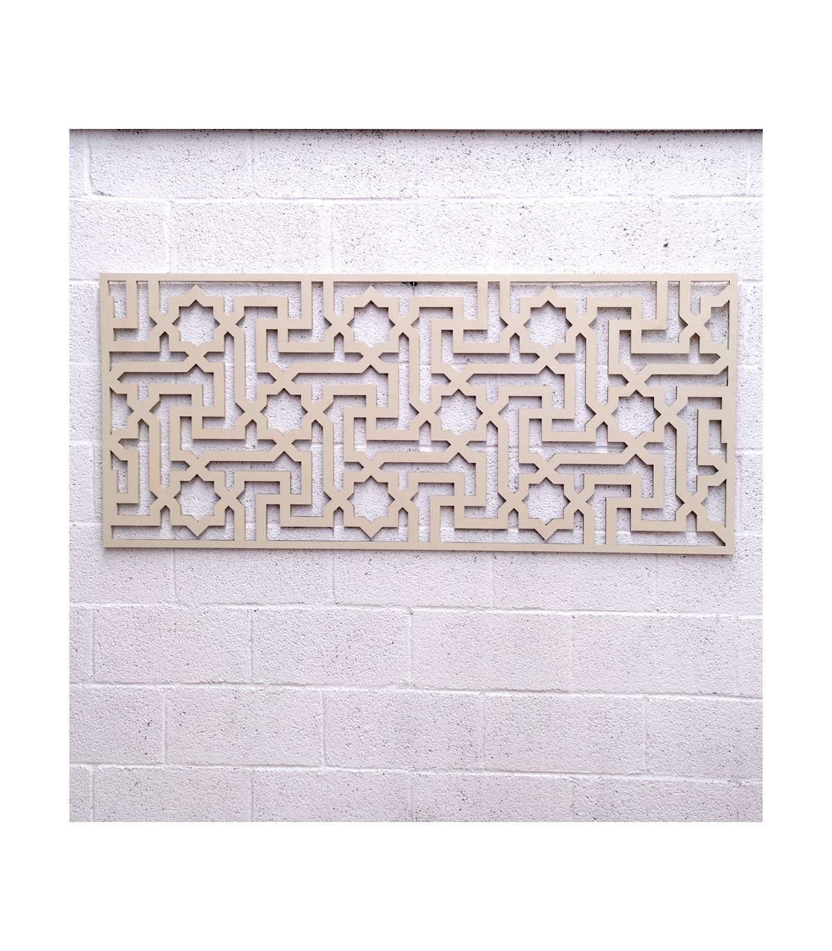 Arabic style headboard made of wood with a lattice design inspired by the borders, mosaics and geometric designs of the Alhambra and Generalife. It can also be used at the client's taste.Presented in 1 piece of 160 x 80 cm In bone white color with support to hang on the wall Installation: It includes a bracket to install on the wall. Measures 160 x 80 cmthickness: 1cm***We are manufacturers and we can design custom-made Arabic latticework and wooden headboards, as well as false ceilings, doors, decorations, flashings, trims,... Ask us if you have any questions.