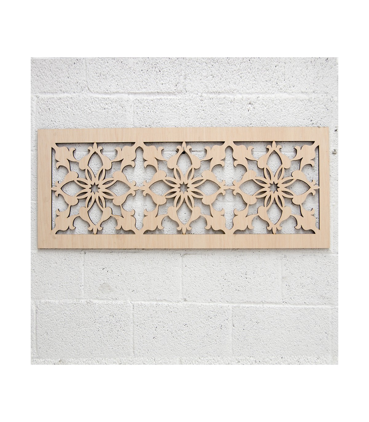 Laser cut latticework in 1cm (10mm) okumen wood, Al Natural.
