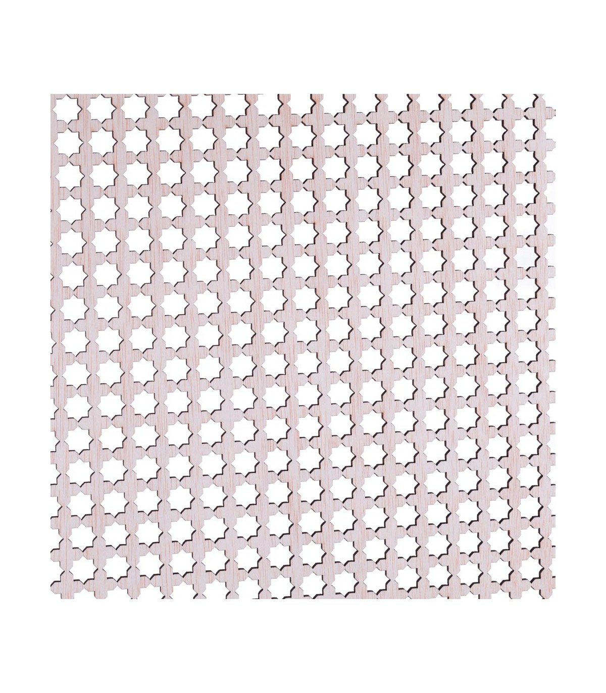 Wooden lattice whose mesh size is an 8-pointed star.It can have multiple uses, to place it in a window, to decorate a piece of furniture to use it as a screen... etc. The use of lattices spread in the Islamic era, especially in exterior windows; because the lattice allows you to see without being seen and the privacy of the home is something essential in the Muslim culture.Measures:100 cm long x 60 cm wide x 4 mm thickNatural finish without varnish. Possibility of painting or varnishing, ask us.