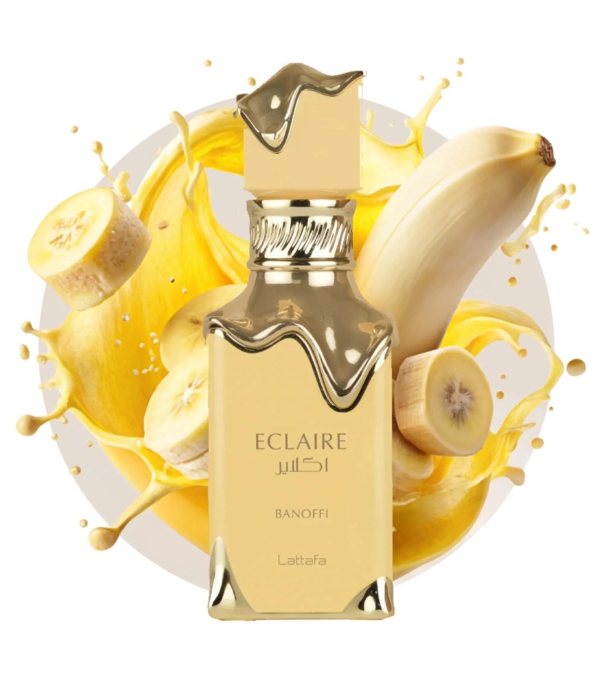 Discover Lattafa Eclaire Banoffi EDP (100ml). An irresistible unisex Arabic fragrance inspired by the Banoffee dessert, with notes of banana, dulce de leche, vanilla and biscuit. Buy it today!