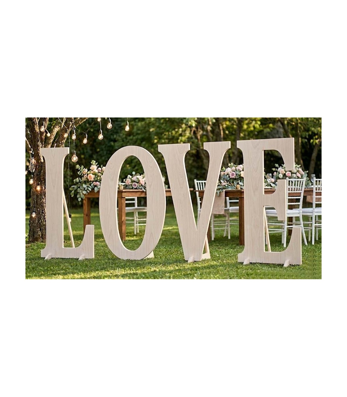 Highlight your event with giant wooden letters in kalabó. Ideal for weddings and outdoors. Customize your size and font. Buy direct from factory!