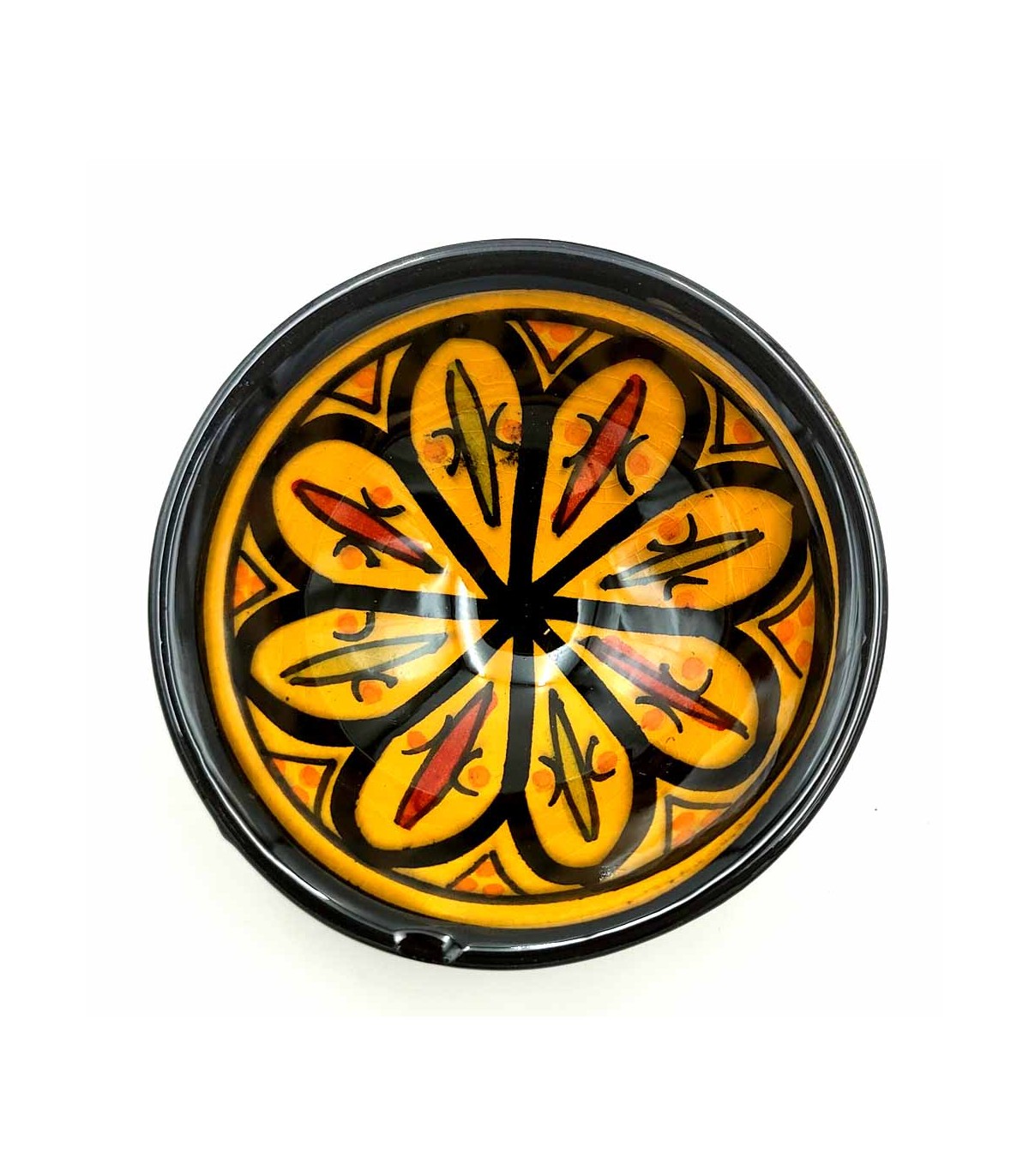 Ceramic bowl from the famous Asfi or Safi city of Morocco. Where they make ceramics in the Andalusian style that is transmitted from master to master, maintaining the technique and colors of ancient Al-Andalus.If you want to decorate your home in an authentic Arabic style, you can use these bowls as spice racks, sauce bowls, for aperitifs... Perfect for decorating your table and for your guests to be truly enchanted by the vivid colors of hand-painted artisan ceramics from Morocco.The size and designs may vary slightly, as it is a handicraft, it always varies a bit, but maintaining the tonality. Available more colors and models click HEREAvailable in several sizes.Size:Size 1 : 8 x 3cm Size 2 : 12 x 4.5cm Size 3 : 16 x 7cm Size 4 : 21 x 8.5cm