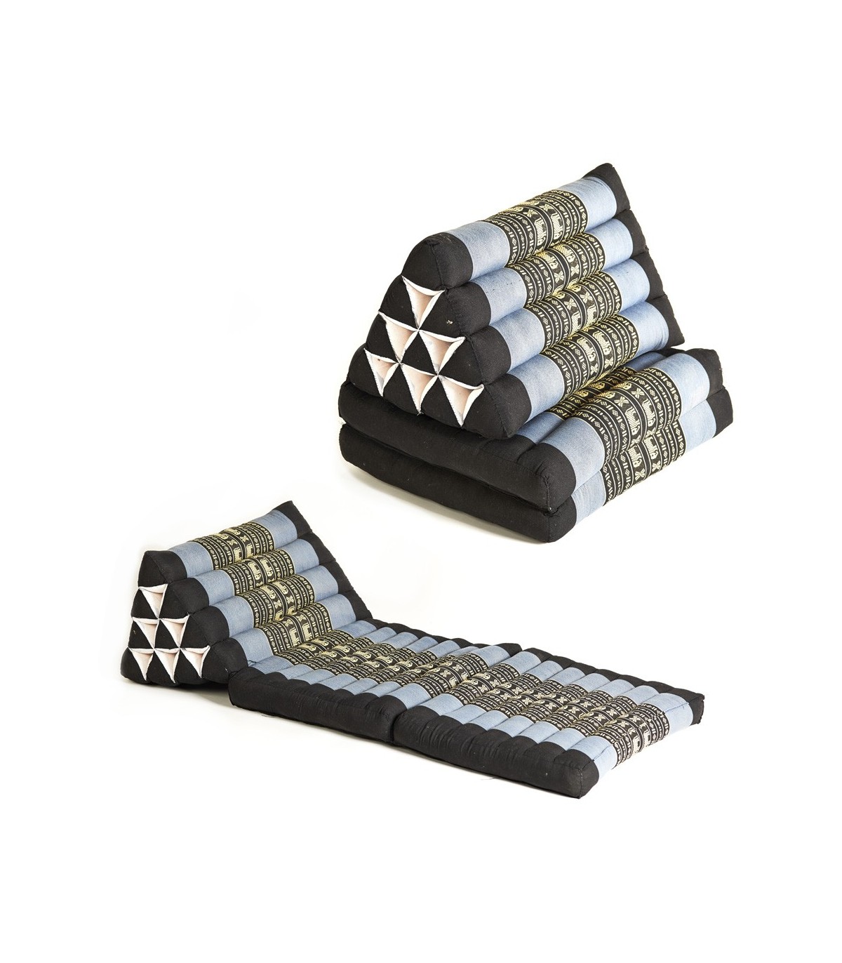 The cushion consists of a triangular part and another cushion sewn (you can choose with 1,2 or 3 cushions).