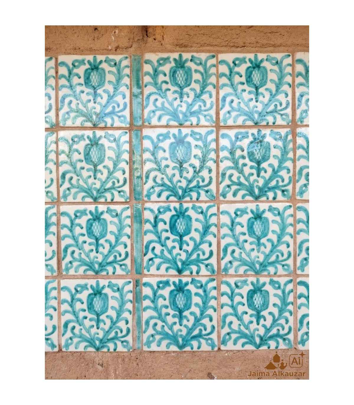 Andalusian Tile - Nazari Zellige Mosaic - 10 x 10cm - Handmade - Fajalauza Green Coral Model