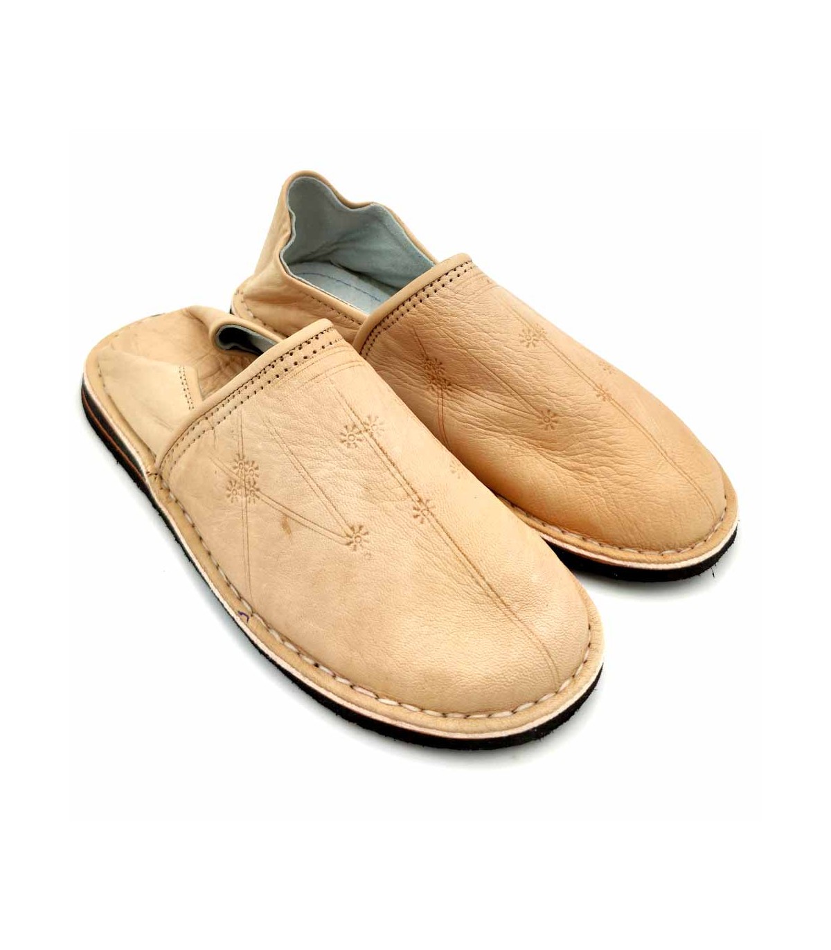 Adult Unisex Leather Arab Slippers - Skin Color - Moroccan Handicraft - Kadim Model