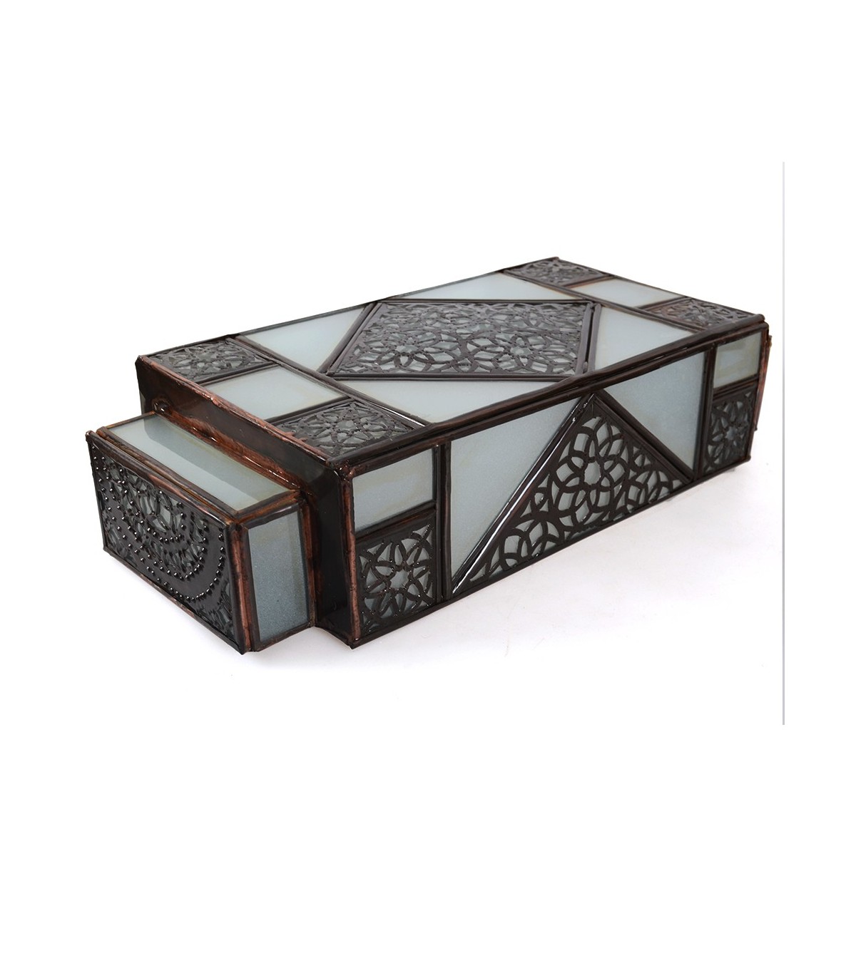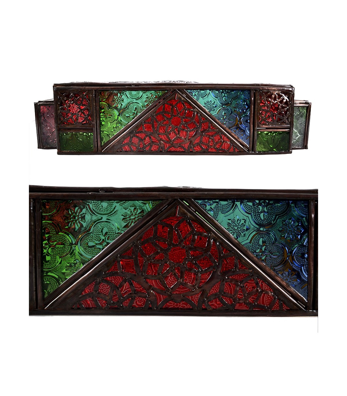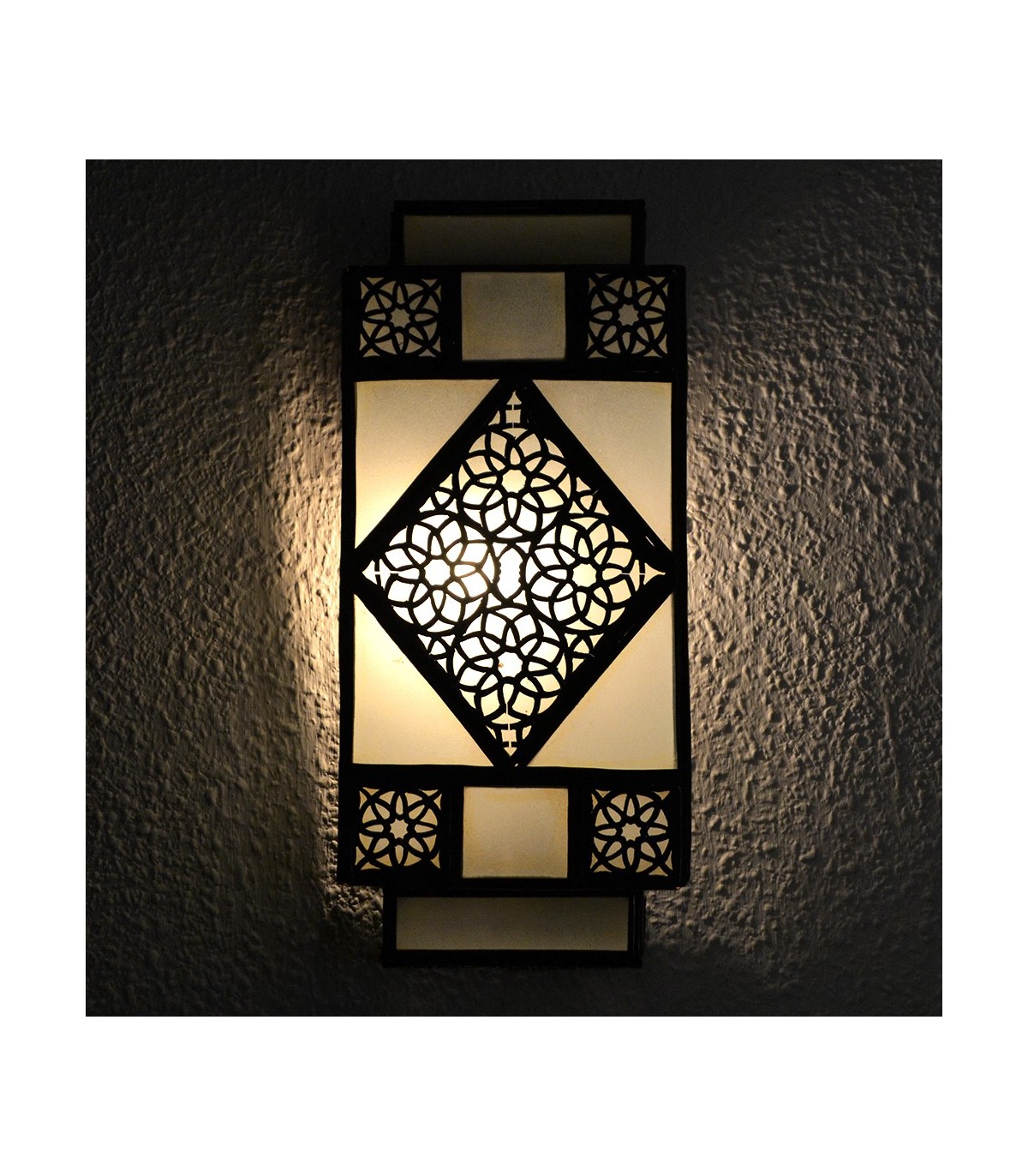 Elongated wall light available in opaque white or multicolored (each crystal in one color). Openwork with Arabic motifs. Creates a very pleasant atmosphere. High quality product very well finished, made of aged...