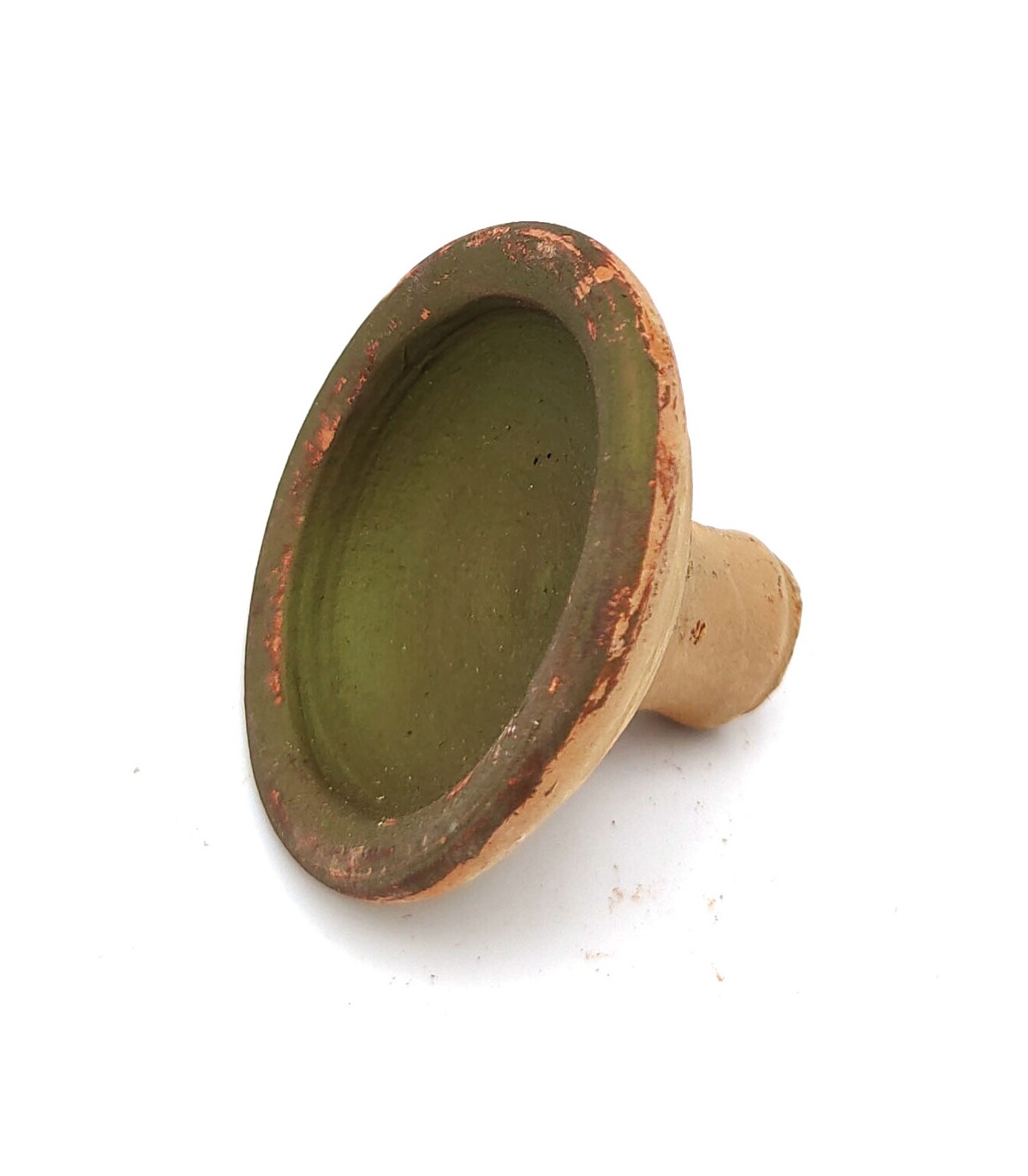 Natural lipstick made with poppy leaves. They are presented in a ceramic bowl. Although the finish is dark brown when used it leaves a deep red. It lasts quite a bit. To use it, moisten a brush and gently spread it on the surface.