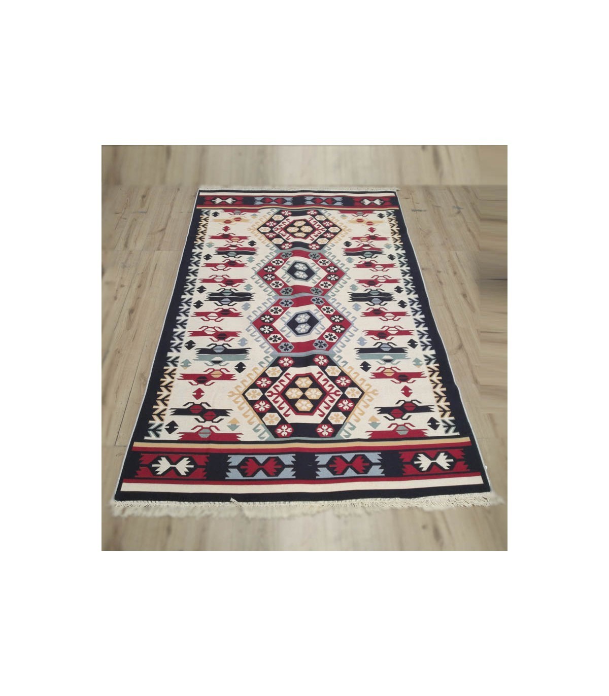 Discover the elegance of Ottoman style with this Turkish kilim rug, a vibrant tapestry designed to highlight any space, from your living room to the terrace. Perfect for creating cozy and bohemian atmospheres, this 300 x 200 cm rug is ideal for both summer nights outdoors and for sheltering from the cold in winter. Made in Turkey, it brings a touch of Arab and Ottoman decoration to your home, evoking the sophistication and charm of past times. Enhance your space with this unique piece of Turkish craftsmanship.