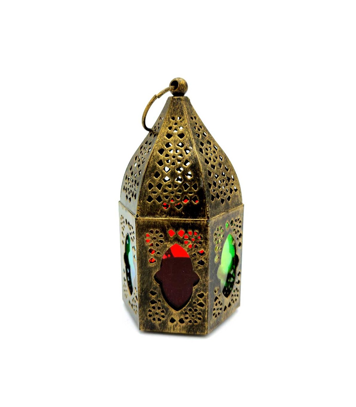 Aged metal openwork candle holder.Arabic design. Can be purchased with or without gold chain (30 cm)It has a security tab so that it does not open.Measures:26x12cm