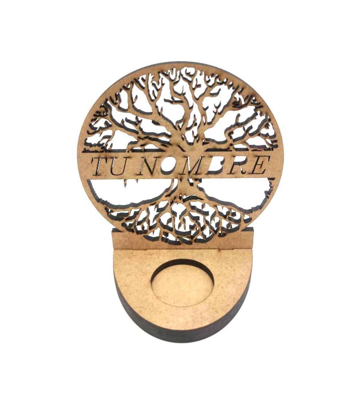 Candle holder Cut by laser, personalize it with your name or with the name you want, ideal for a gift. It will create a shadow with your name and with the shadows of the tree of life design.