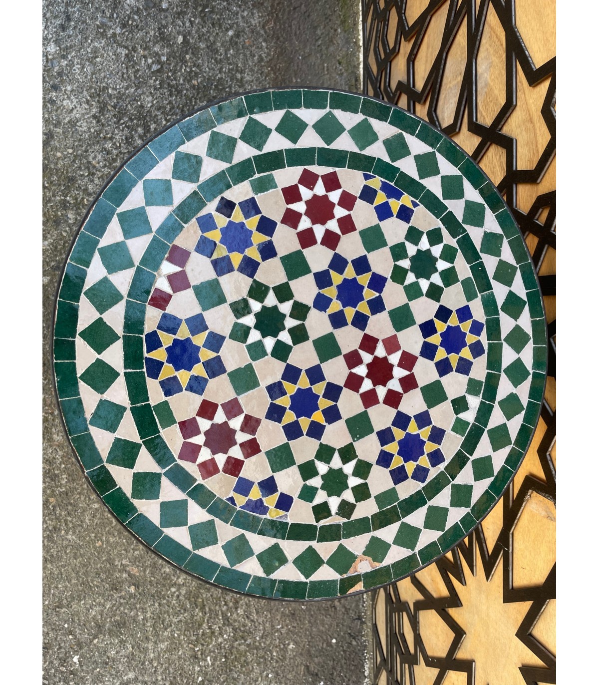 Handmade mosaic table/strong>Andalusian made, designed and assembled in Moroccoby master craftsmen from the famous city of FEZ using the ancestral technique of zelige tile, taught by the master craftswomen of ancient Al-Andalus and maintained until now from father to son.