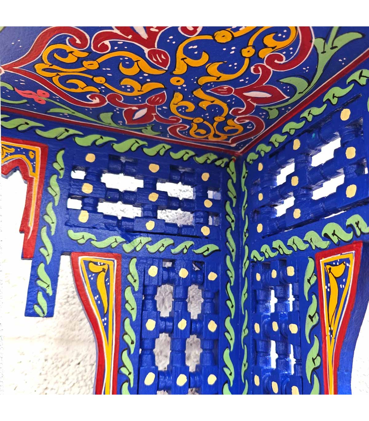 Beautify your home with this hand-painted wooden corner shelf, handcrafted in Morocco following the Andalusian tradition. Decorated with floral and geometric motifs, each piece is unique, thanks to its artisanal character, which adds a special charm to any space. Ideal for corners in living rooms, bedrooms or terraces, this 28 x 28 x 52 cm shelf combines functionality and authentic design. Give your home an exclusive and warm touch with this decorative work of art.