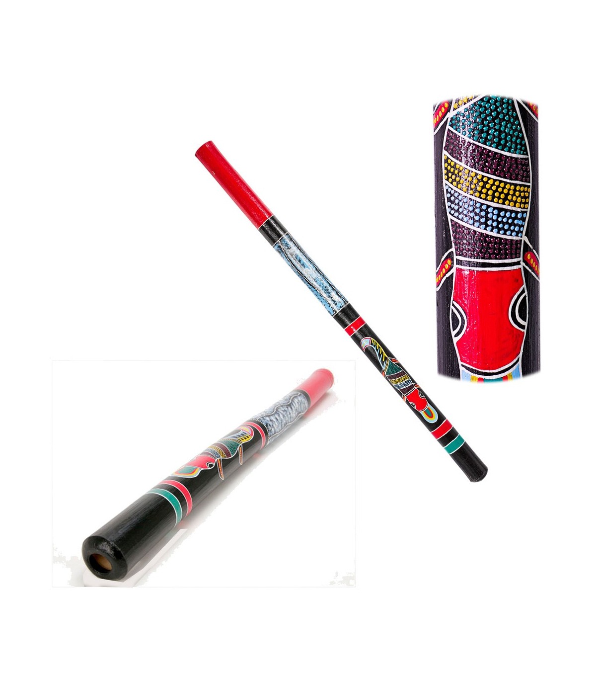 The didgeridoo,"didjeridu", diyiridoo is an ancient wind instrument (or aerophone) used by the Aborigines of Australia. It is basically a wooden tube, which is made to sound by vibrating the lips inside. It is supposed to be around 2,000 years old [citation needed], according to the dating of some cave paintings in which the instrument appears, although the aborigines themselves give it an age of up to 40,000 years. [citation needed] The term didgeridoo is not of aboriginal origin, it is the one given by the Europeans on their first visits to the island. In the dozens of aboriginal dialects there is a different word to designate this instrument, such as yidaki, ginjungarg, eboro, djalupu, maluk, etc. The didjeridu is closely linked to the spiritual existence of the Aborigines. Its main function is to accompany a dance and a singer, serving as an accompanying instrument, as well as marking the tempo for the rhythm of the songs. Measurements: 1m x 6cm