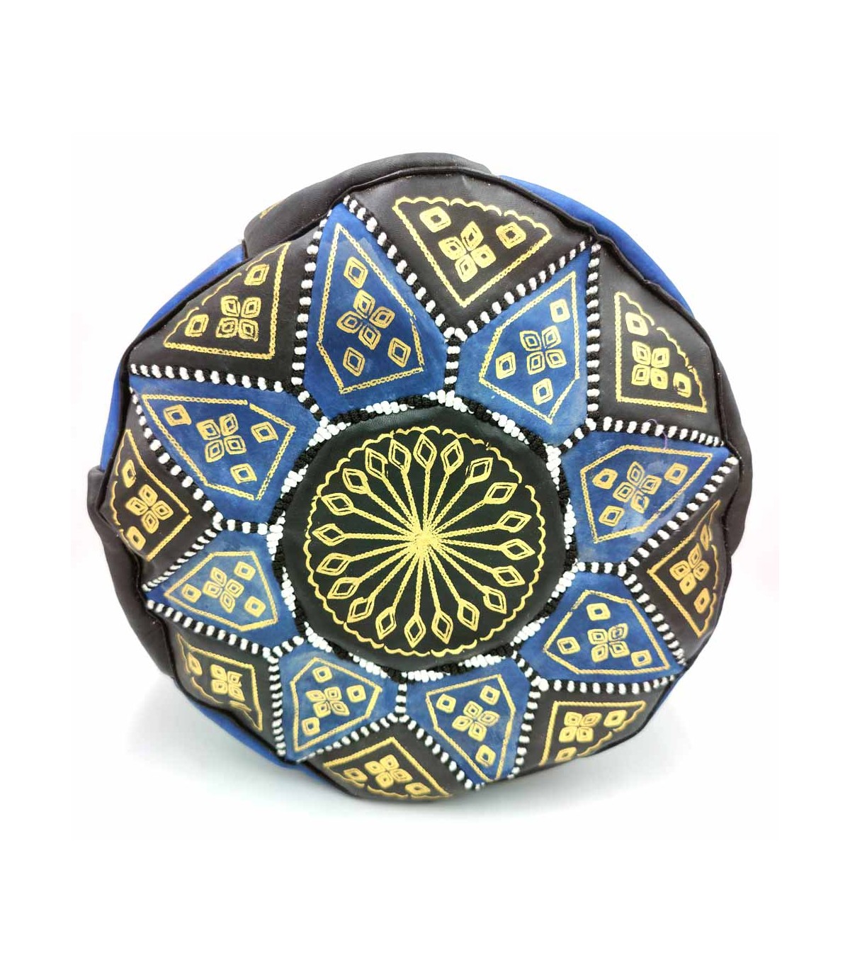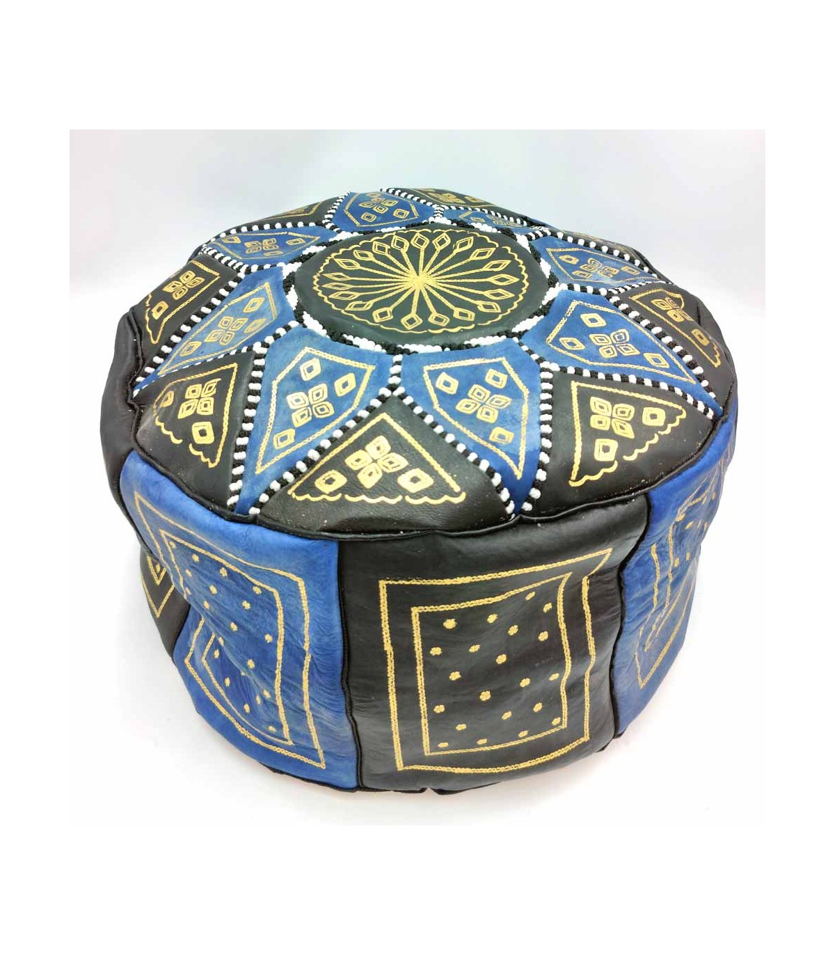 Arabian Puff 100% Leather - Blue Color Moroccan Craftsmanship - Aswad Azrak Model