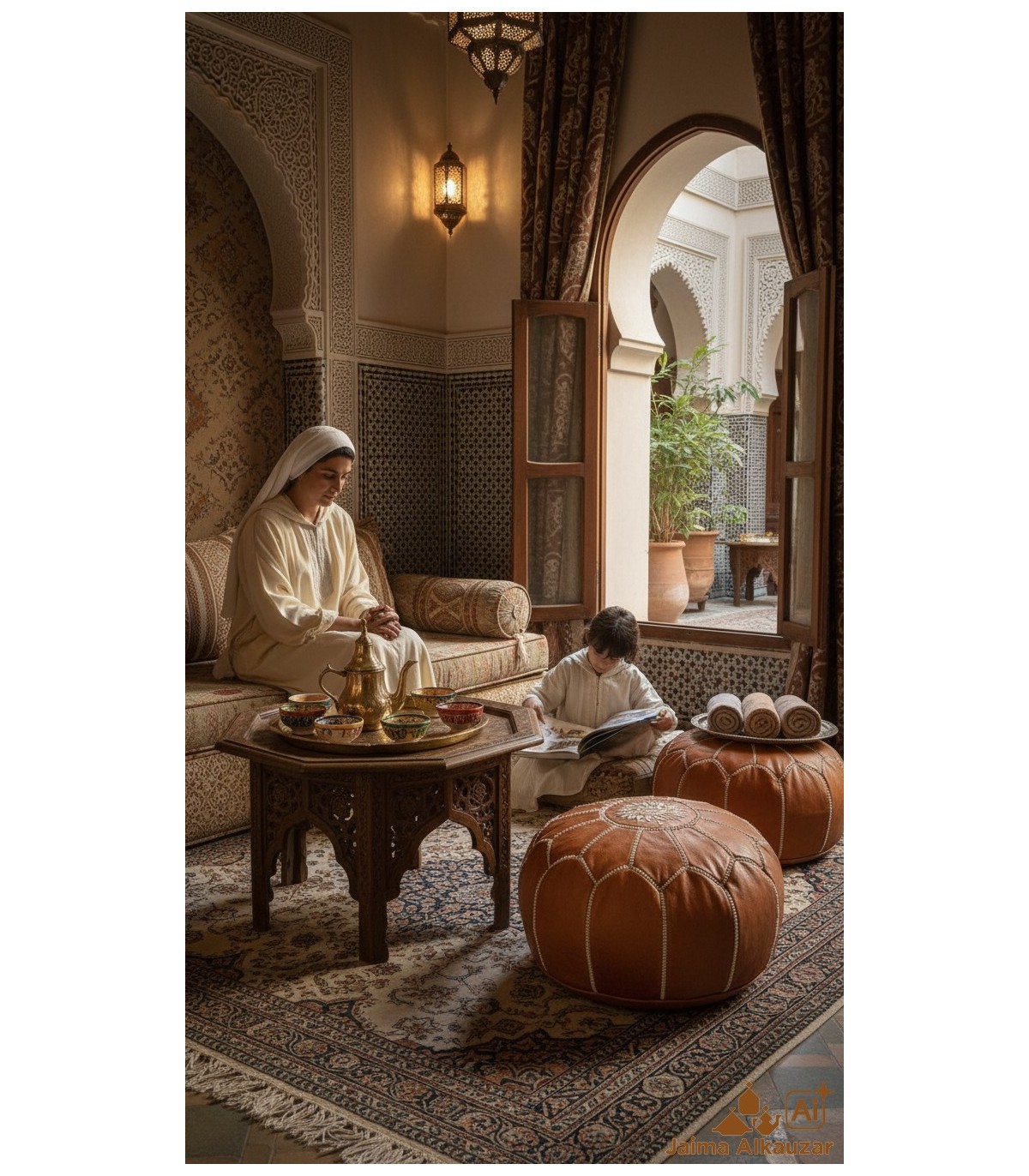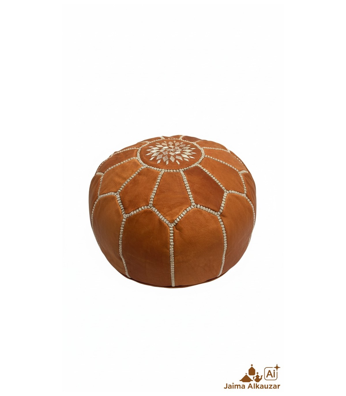 Moroccan pouffe Andalusian Arabic style handcrafted in leather. Made in Morocco, handcrafted, decorated with colored mosaic and decorated with golden motifs. Ideal for decoration in the style of Arabian Nights. To...